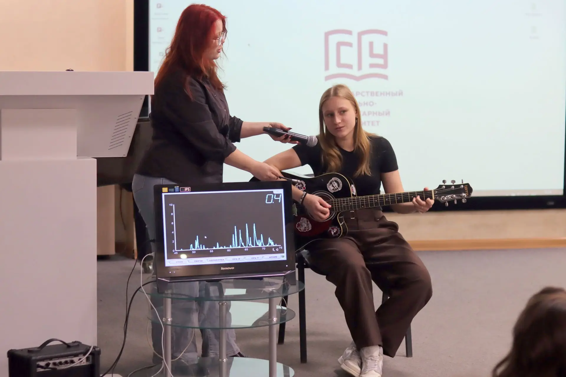Студенты и преподаватели рассказали, почему шум ракеты вреден для электроники, какую музыку любили слушать космонавты и даже «показали звук» с помощью опыта Хладни и анализатора звукового спектра. 📊