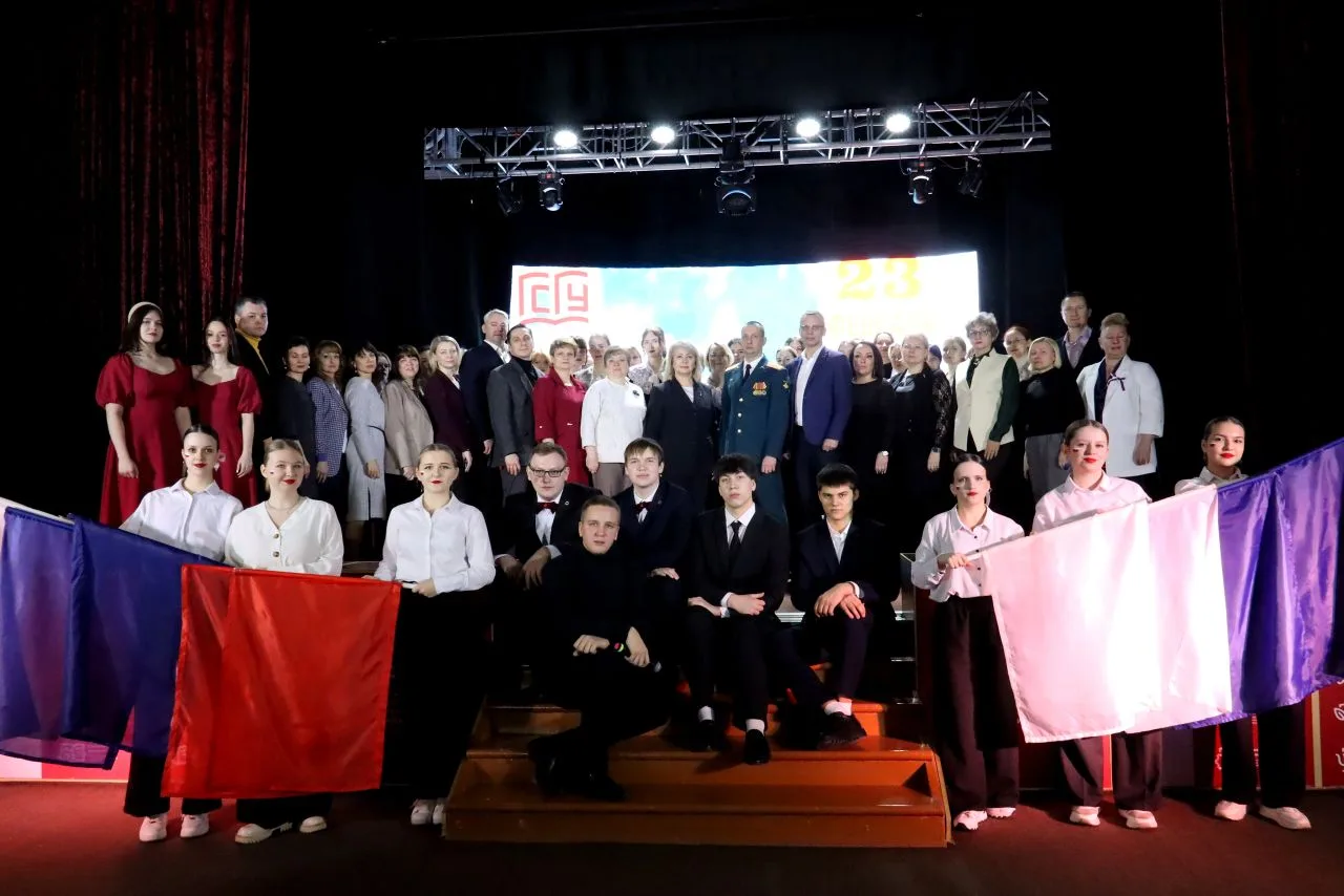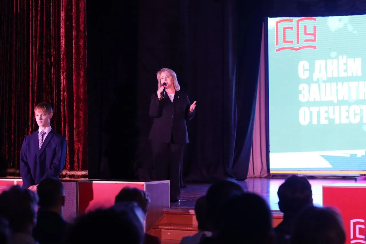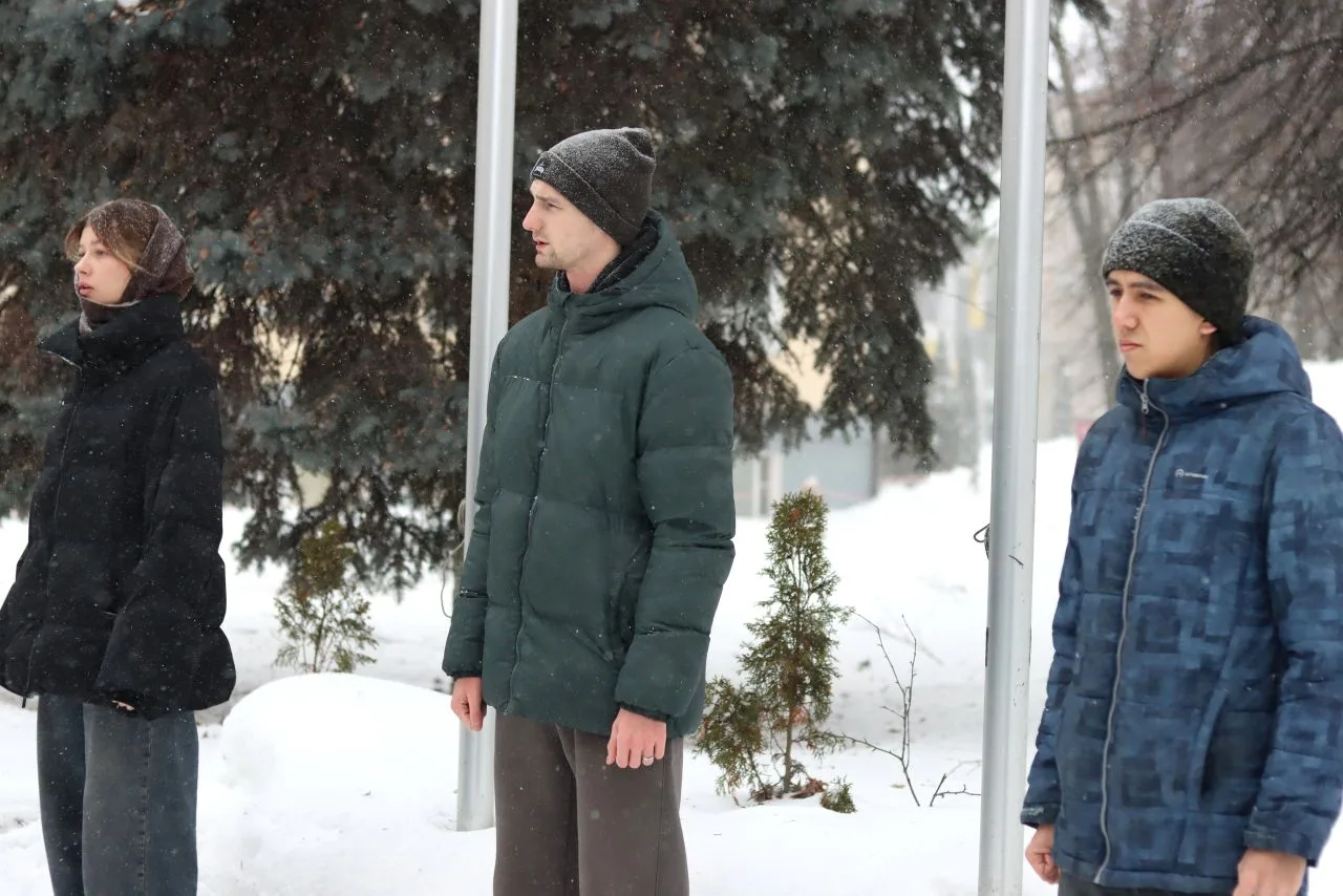На утренней церемонии поднятия флагов университет во главе с ректором вуза Жанной Константиновной Леоновой проводил двух студентов в новую добровольческую командировку на освобожденные территории.