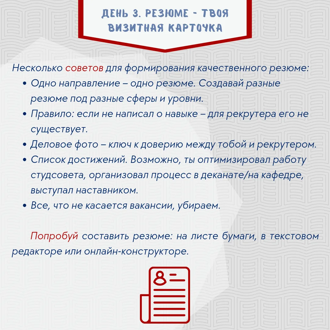 📝 Лайфхаки – в карточках третьего дня марафона по трудоустройству.