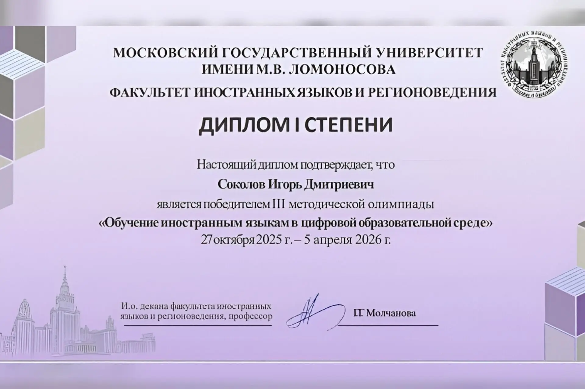 Четверокурсник ФИЯ Игорь Соколов победил в III методической олимпиаде «Обучение иностранным языкам в цифровой образовательной среде».