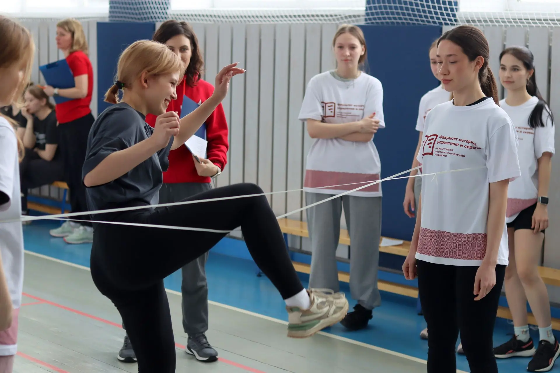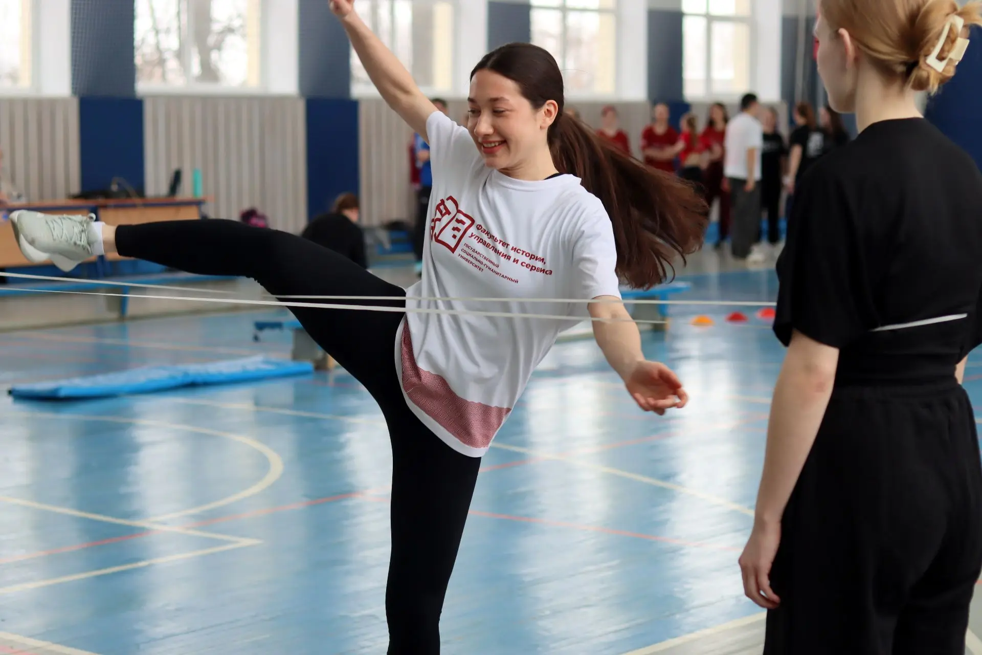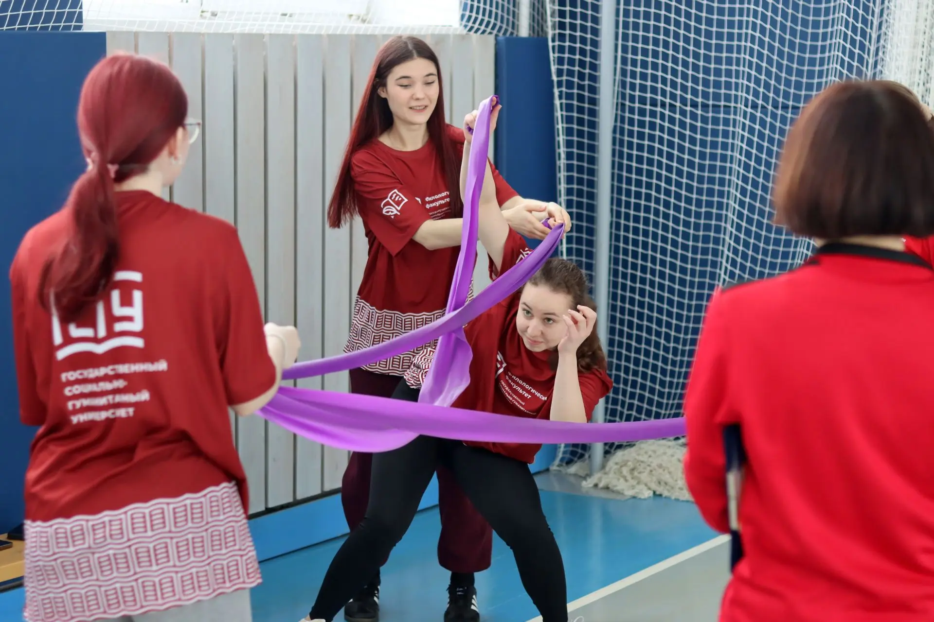 Команды девушек от каждого факультета соревновались в ловкости, скорости и силе на 🌸 пяти станциях: полоса препятствий «Ручеек-Цветок-Веночек», «Танец равновесия», «Фитбол-баттл», «Счастливый прыжок» и «Коса до пояса».