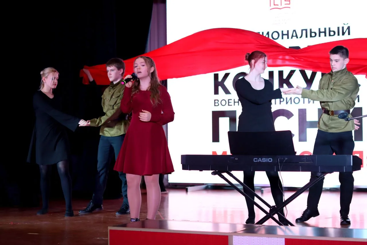 В репертуаре юных исполнителей – патриотические куплеты разных эпох, воспевающие подвиги защитников Отечества, славную историю страны, красоту русской земли. Зрители услышали как песни, которые пели солдаты в сороковые, так и свежие авторские композиции, но с теми же вечными ценностями.