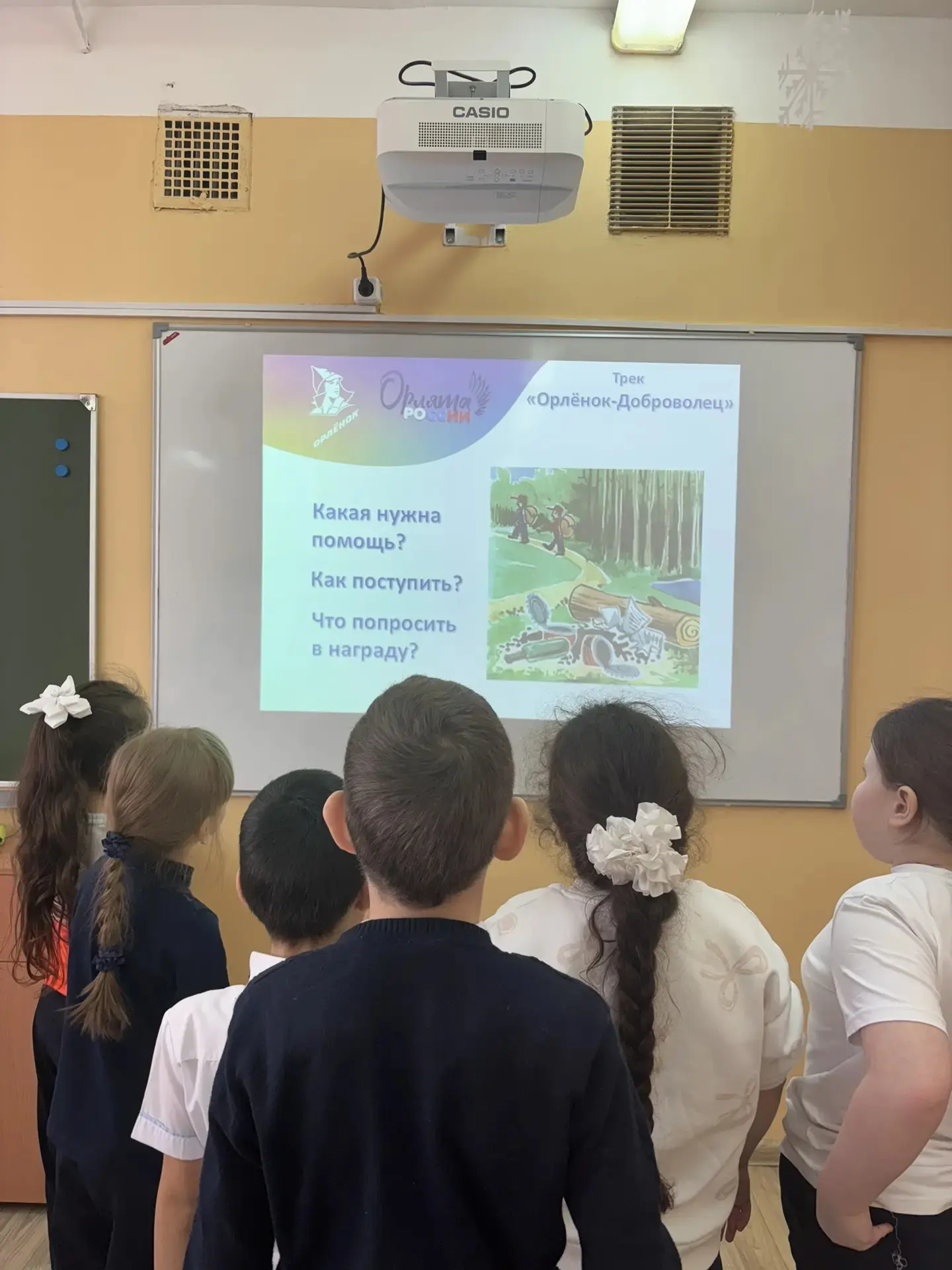 Орлята нашей школы приступили к реализации трека "Орлёнок - Доброволец". Занятие «От слова к делу» прошло во всех классах начальной школы. Ребята приступили к знакомству с удивительным миром добра, в котором каждый помогает друг другу и всем вокруг.