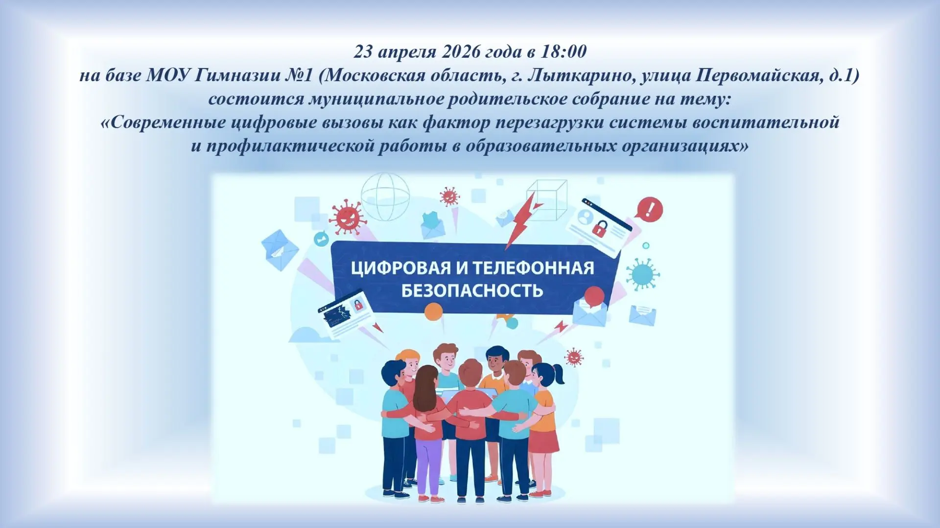 Приглашаем вас на важное муниципальное родительское собрание, посвященное актуальным вопросам воспитания и безопасности детей в цифровую эпоху.