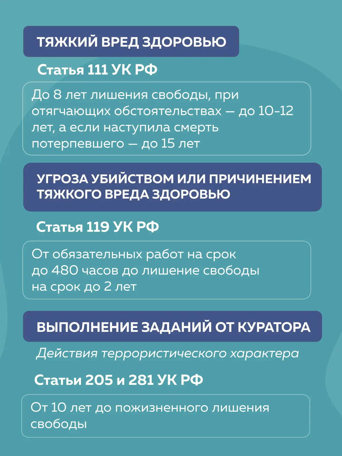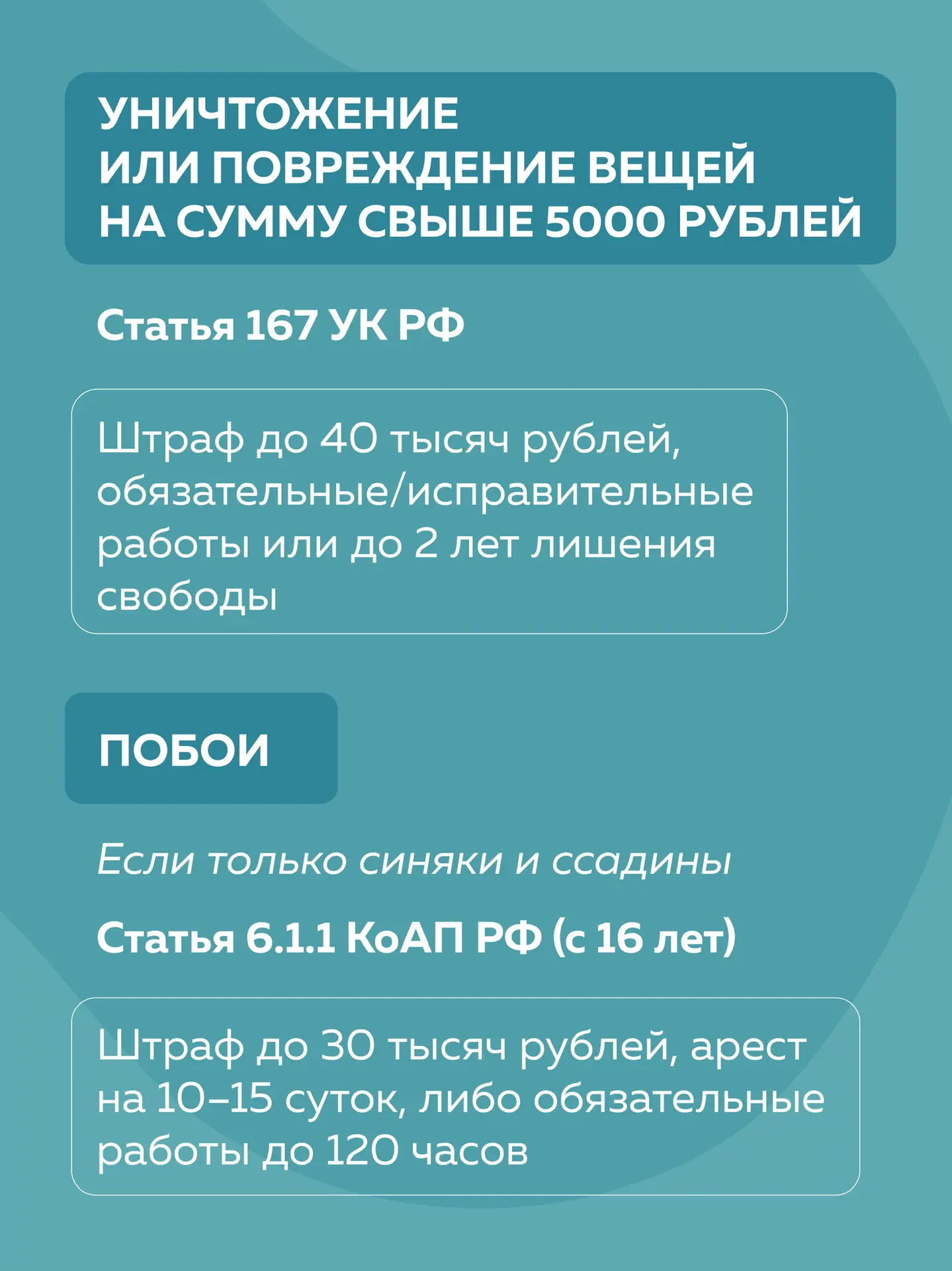 ⚠️ Напоминаем, что при отягчающих обстоятельствах уголовная ответственность наступает уже с 14 лет. А если подросток в силу возраста еще не может ее понести, то его обучение продолжится в учреждениях закрытого типа.