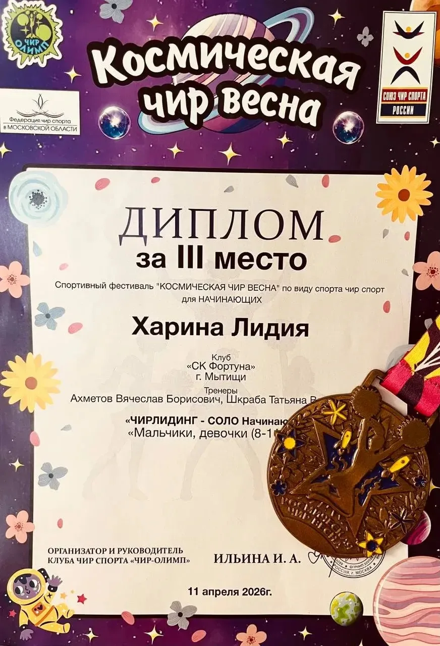 🌟Харина Лидия, ученица 2 «Н»класса, приняла участие в спортивном фестивале «Космическая Чир Весна» по чир спорту для начинающих.