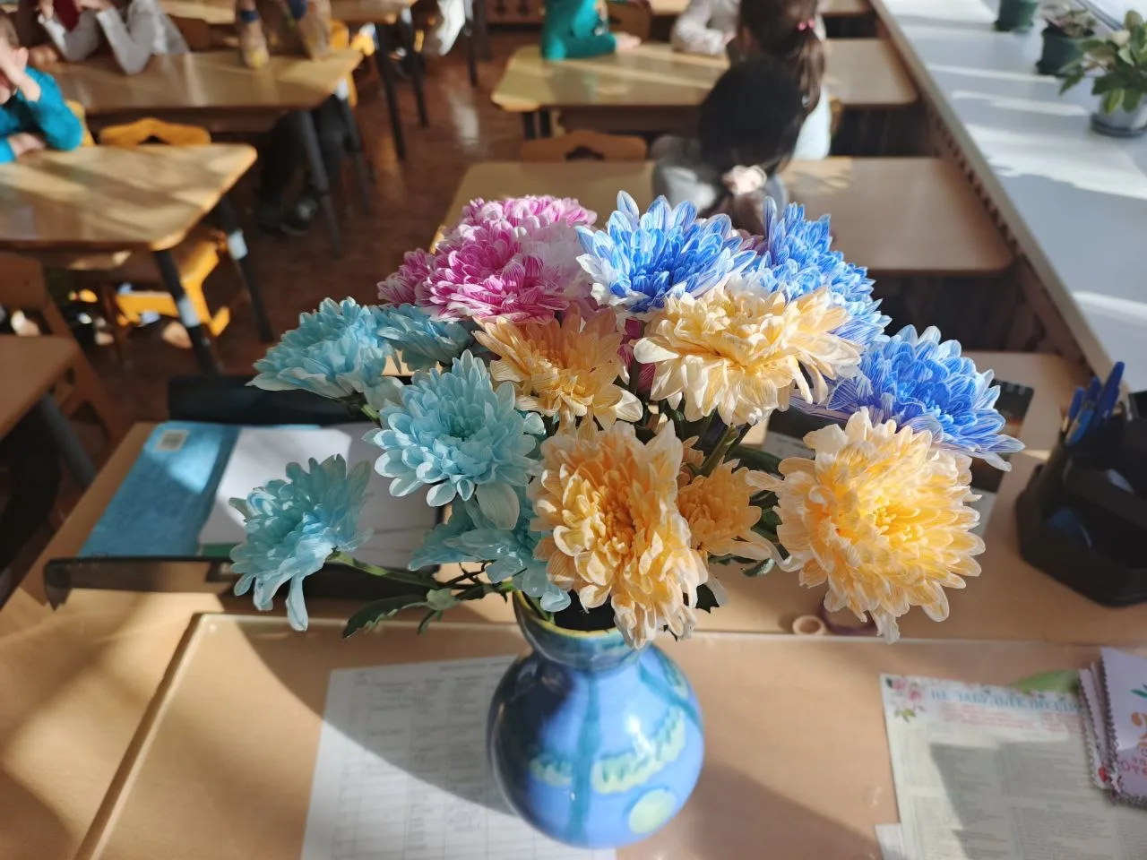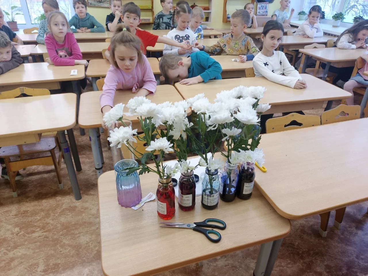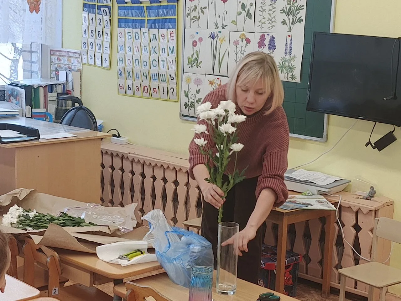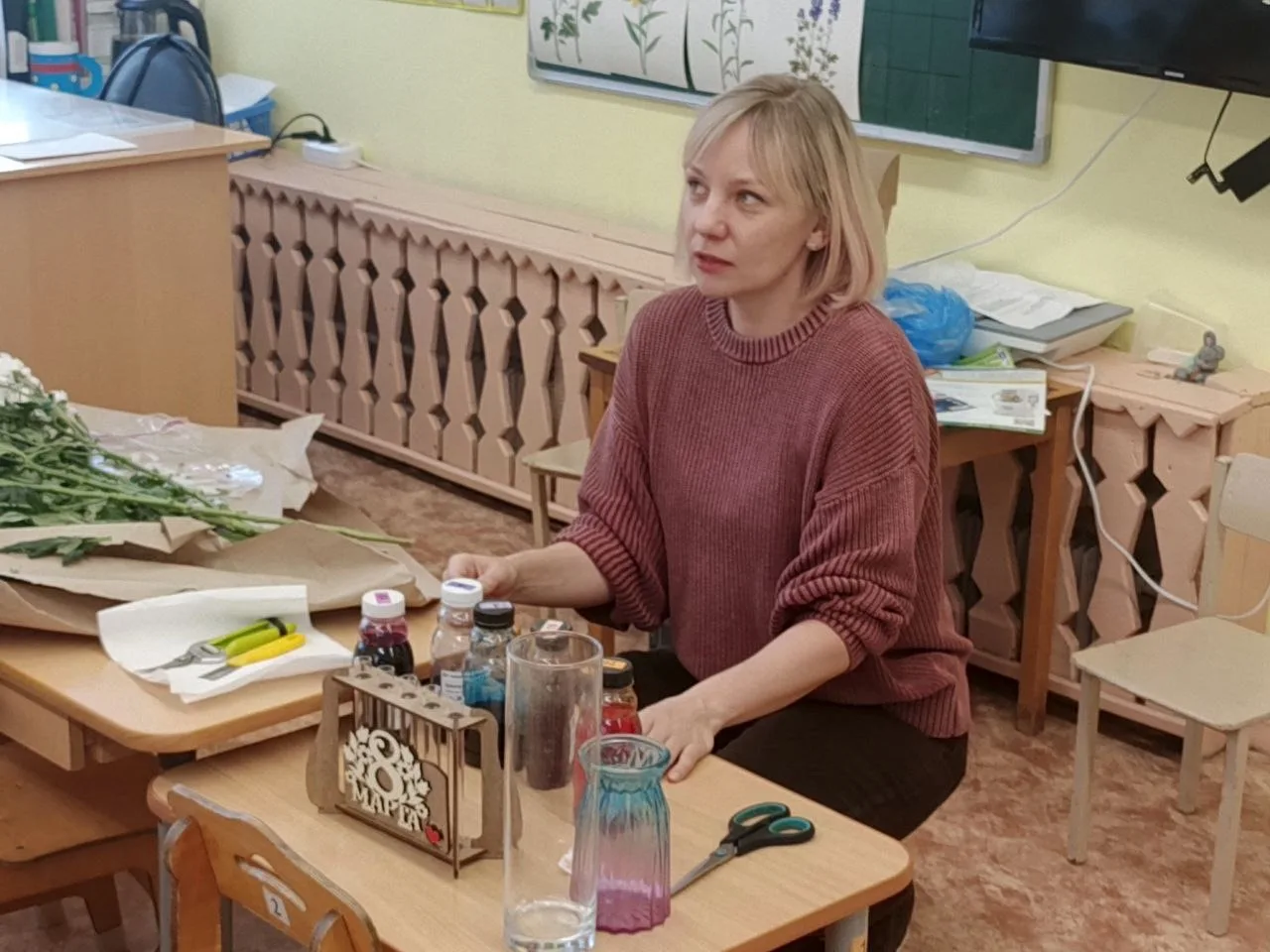 Мама Тимура Алиева, Анастасия Дмитриевна Дубровская, подробно рассказала о составлении букетов, показала, как правильно подрезать и ставить цветы в воду, а также продемонстрировала приёмы окраски 🌷✂️💧🎨.