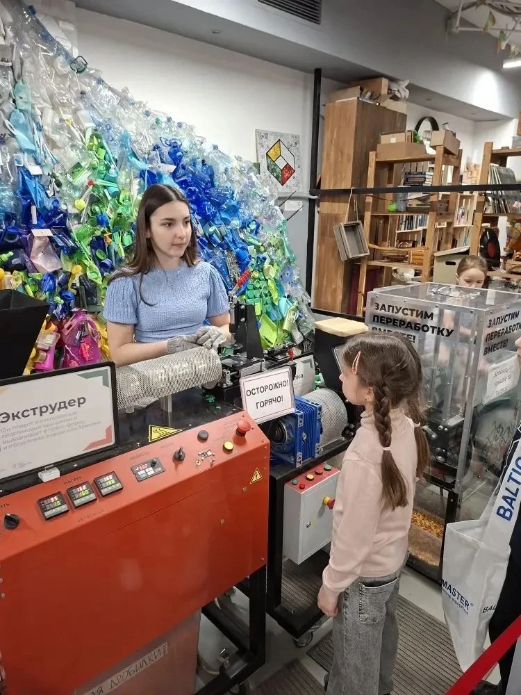 ♻️Дети увидели предметы, полученные в результате переработки пластика, макулатуры, стекла, металла. Ребята рассмотрели уникальные дизайнерские штучки, например, одежду, сшитую из переработанных рыболовных сетей, рюкзак из пвх-тентов для грузовиков и другое. Экскурсия проходила в интерактивной игровой форме. В завершении программы ребята поучаствовали в мастер-классе по переработке пластика на небольшой производственной линии, установленной в музее.