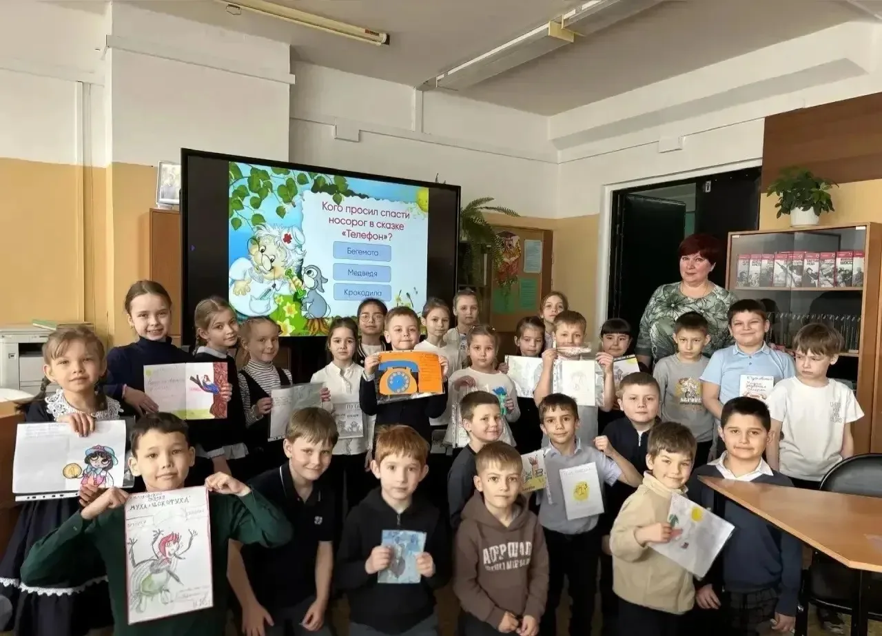 📚 К 100 летниму юбилею любимого детского поэта Корея Иванович Чуковского нашей школе прошли мероприятия. Благодаря инициативе и тёплой атмосфере, которую создала библиотекарь