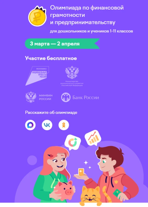 📆Сегодня на Учи.ру стартует всероссийская онлайн-олимпиада по финансовой грамотности и предпринимательству для дошкольников и учащихся 1–11 классов.
