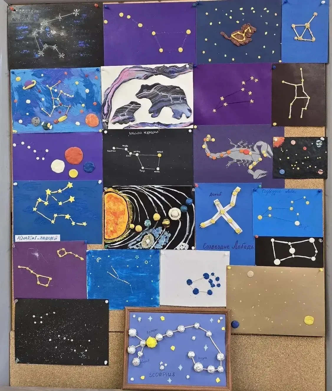 🎓 Используя бумагу, пластилин, бусины и спички, ребята с фантазией воплотили свои идеи. Звёзды на макетах све-тились, словно настоящие, а знакомые очертания созвездий оживали в