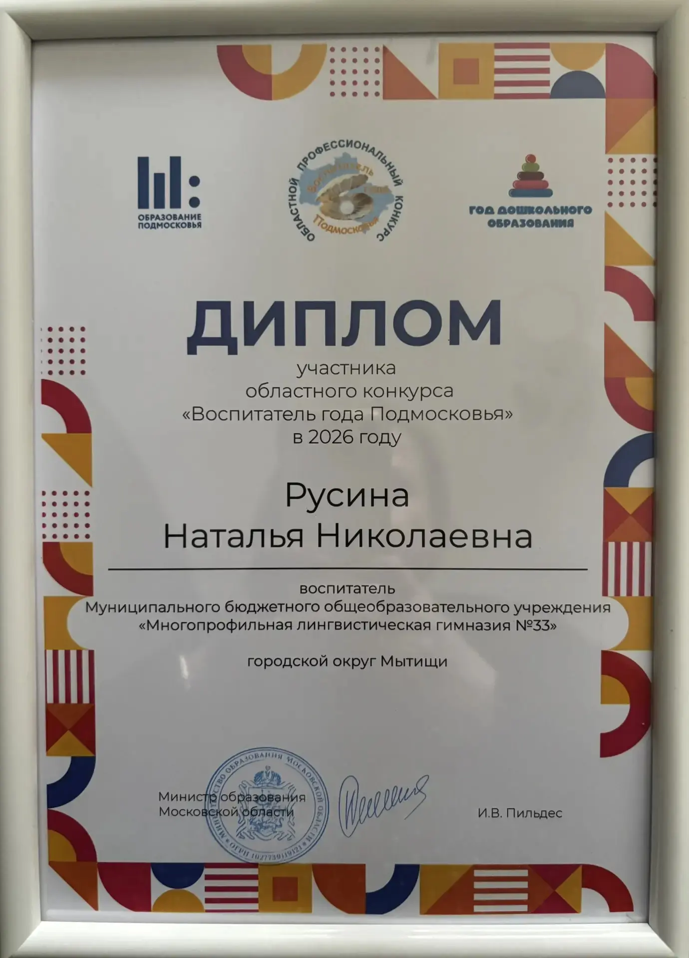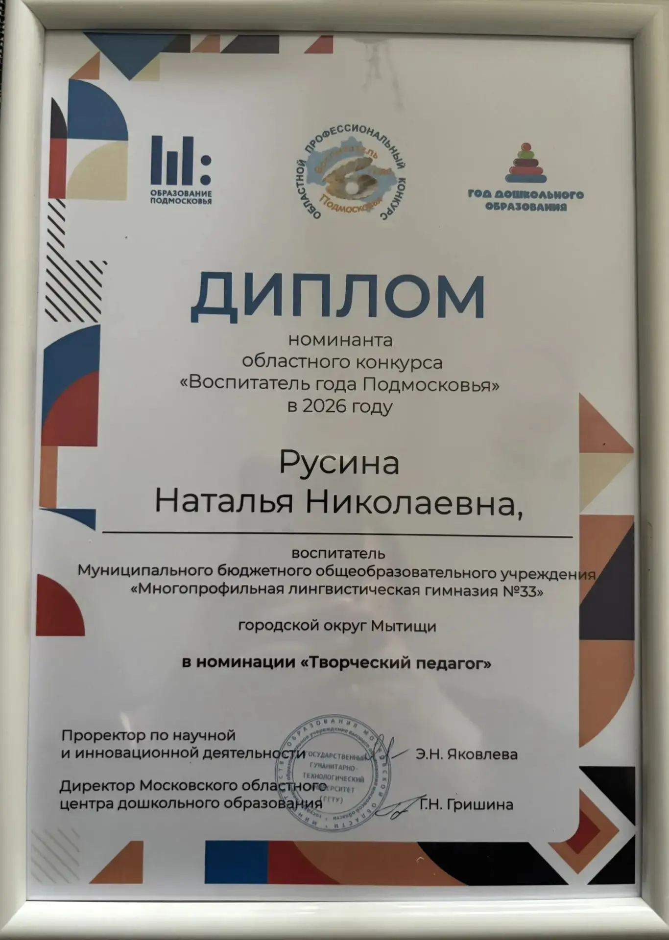 👌От всей души поздравляем нашего замечательного педагога -Русину Наталью Николаевну ⭐️ участницу областного конкурса "Воспитатель года Подмосковья" в 2026 году, которая достойно представила наше учреждение и наш г. Мытищи.💫