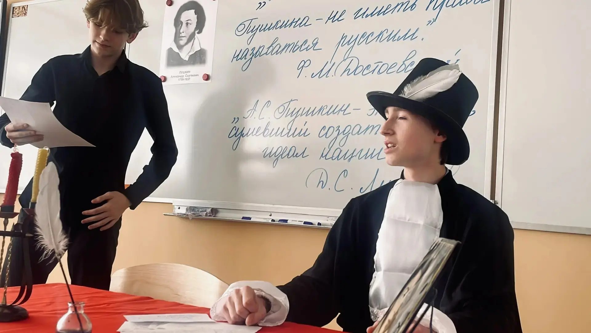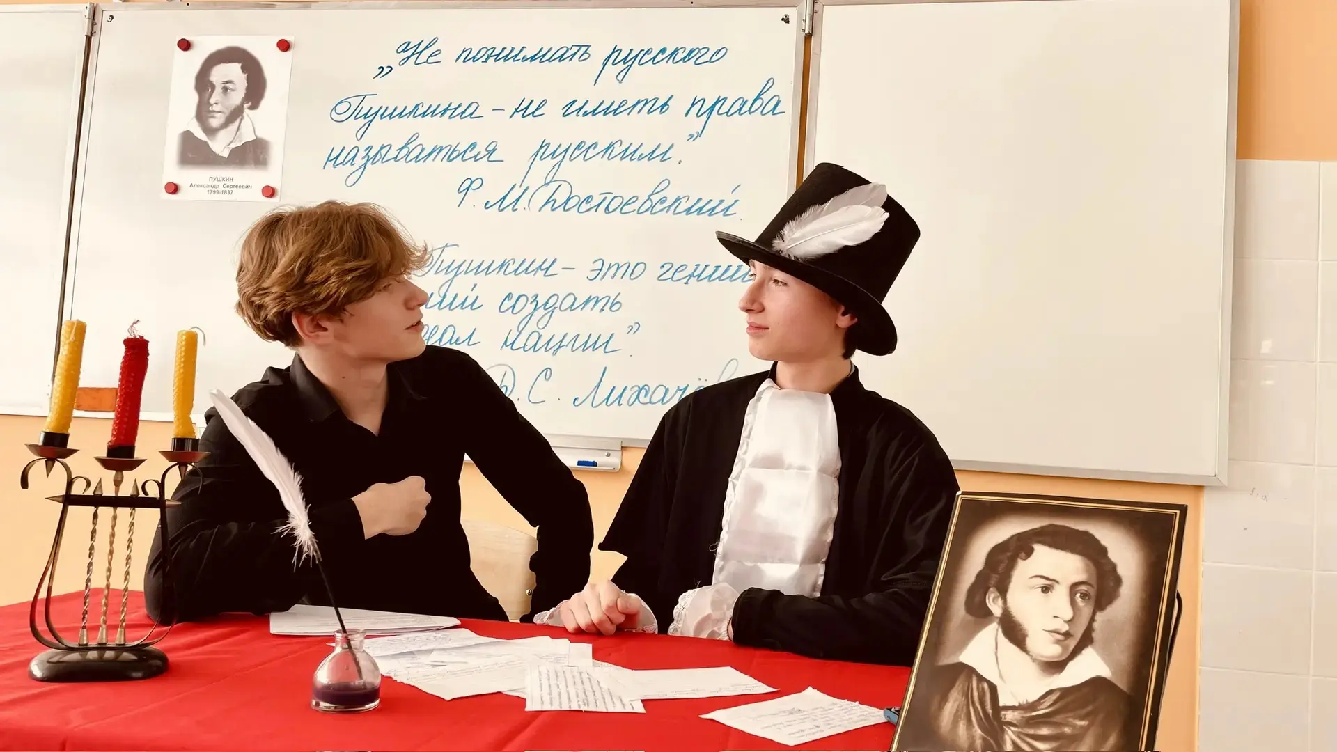 В нашей школе прошёл поэтический урок «В гостях у Александра Сергеевича Пушкина». Ребята вспомнили известные строки великого поэта, участвовали в литературной разминке, читали стихи и выполняли задания на подбор рифм. Особую атмосферу создало появление ученика в образе А. С. Пушкина, благодаря чему встреча получилась живой, интересной и запоминающейся. Урок ещё раз напомнил всем, что поэзия помогает чувствовать красоту родного слова и сохраняет связь с нашей культурой.