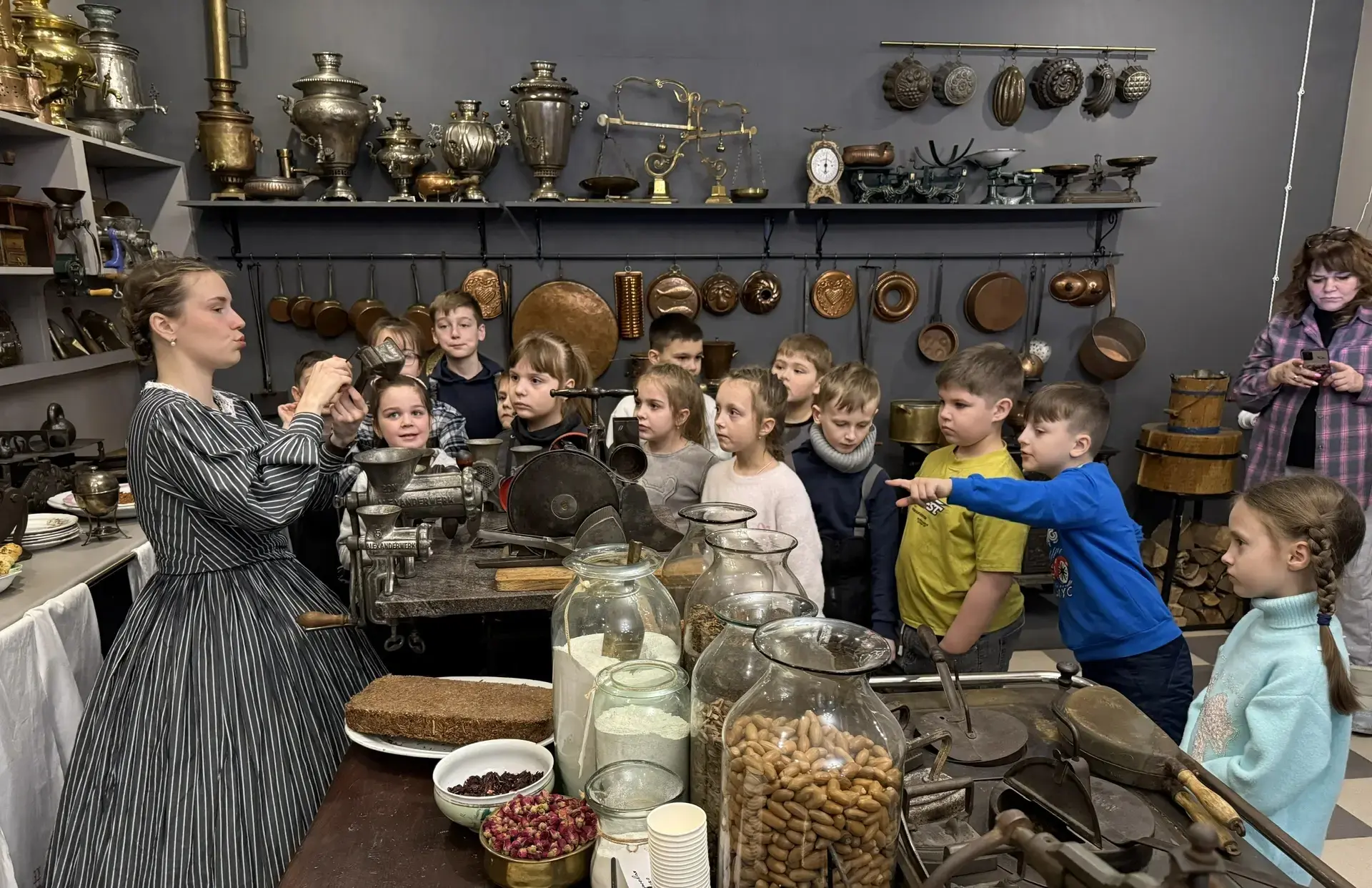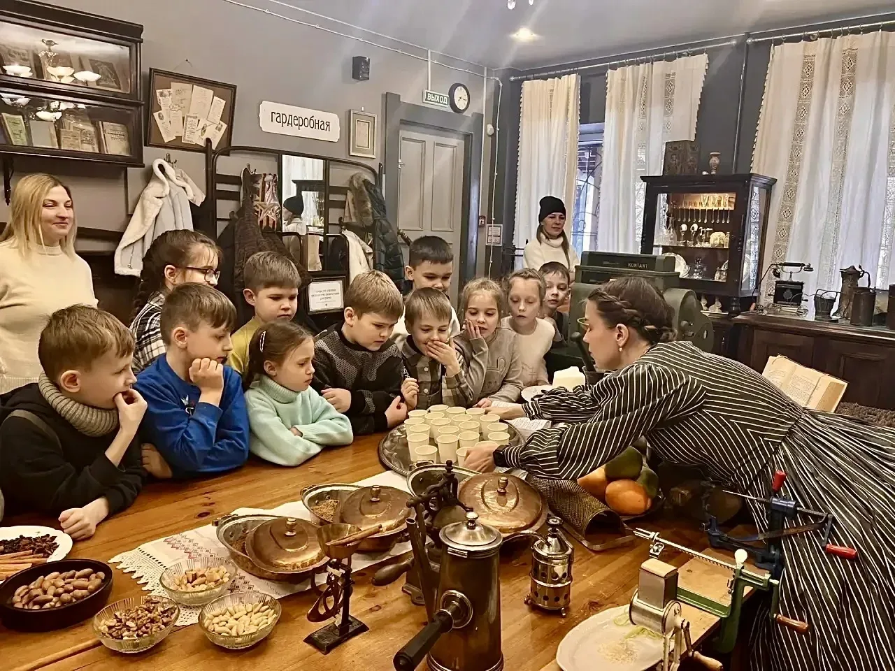 Открыли для себя удивительный сказочный мир Сергиевской кухмистерской. В театрализованной форме погрузились в особенности быта и кулинарии 19 века. Осмотрели залы с историческими интерьерами, а также стали участниками мастер-класса, почувствовали себя настоящими повелителями карамели и леденцов, угостились сладостями с чаем под интересные рассказы хозяев дома.