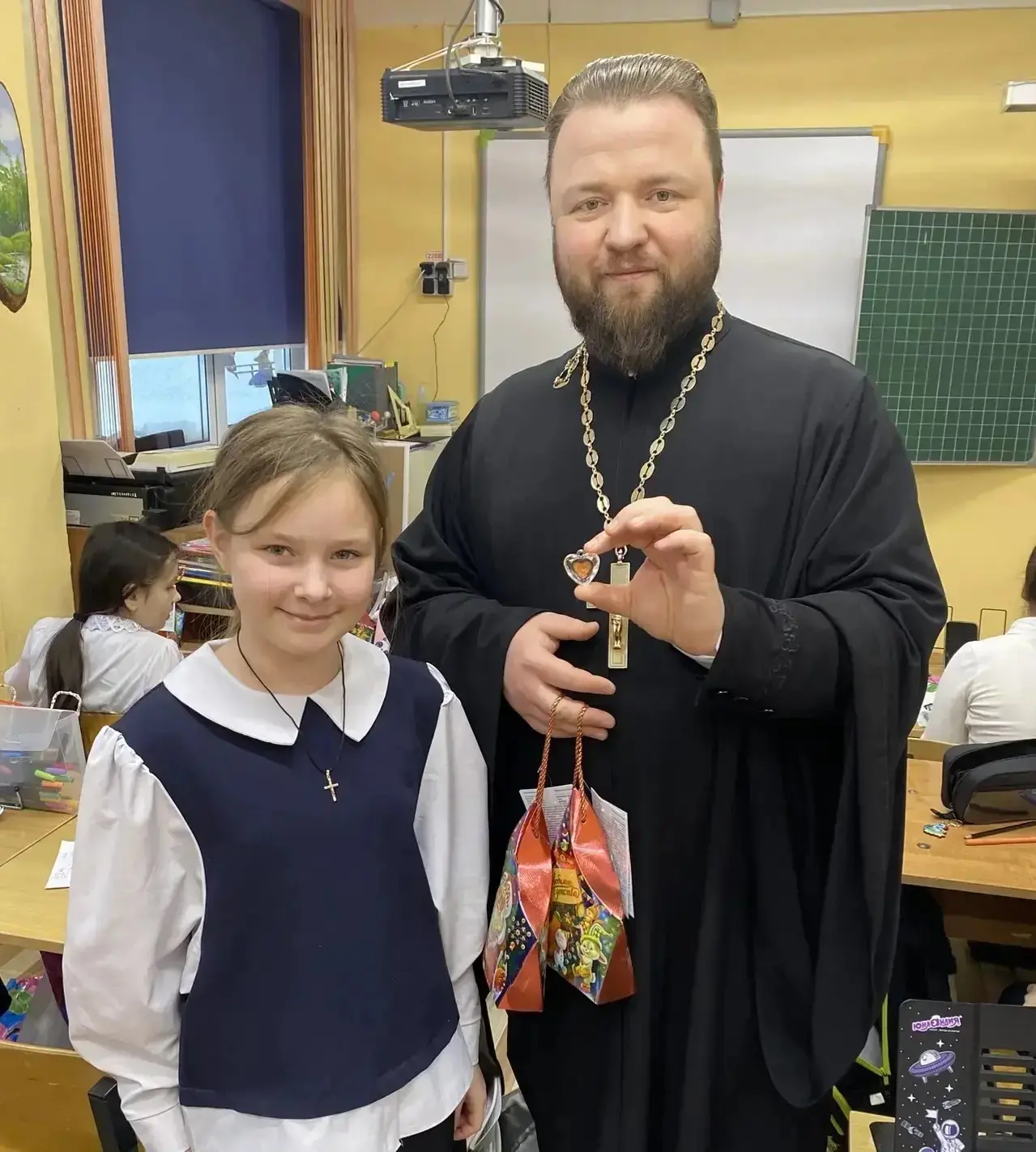 🏫 Именно в эти дни наша школа с радостью распахнула двери для настоятеля Храма Святой Великомученицы Екатерины, отца Сергия. Его визит стал настоящим подарком для наших учеников. Отец Сергий поделился с детьми глубоким смыслом этого события, его историей и значением для каждого верующего. Эта встреча стала для наших учеников не просто познавательной, но и очень душевной. Она помогла глубже понять и почувствовать атмосферу Святок, прикоснуться к православным традициям и ощутить особую благодать этих светлых дней. В завершение встречи батюшка сердечно поздравил всех с наступившим праздником и преподнес детям приятные сладкие подарки. Мы благодарны отцу Сергию за его мудрые слова и за то, что он разделил с нами эту праздничную неделю!