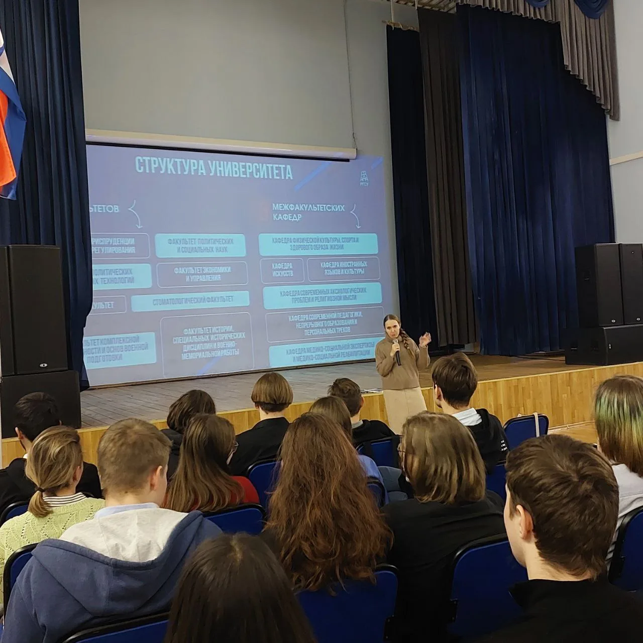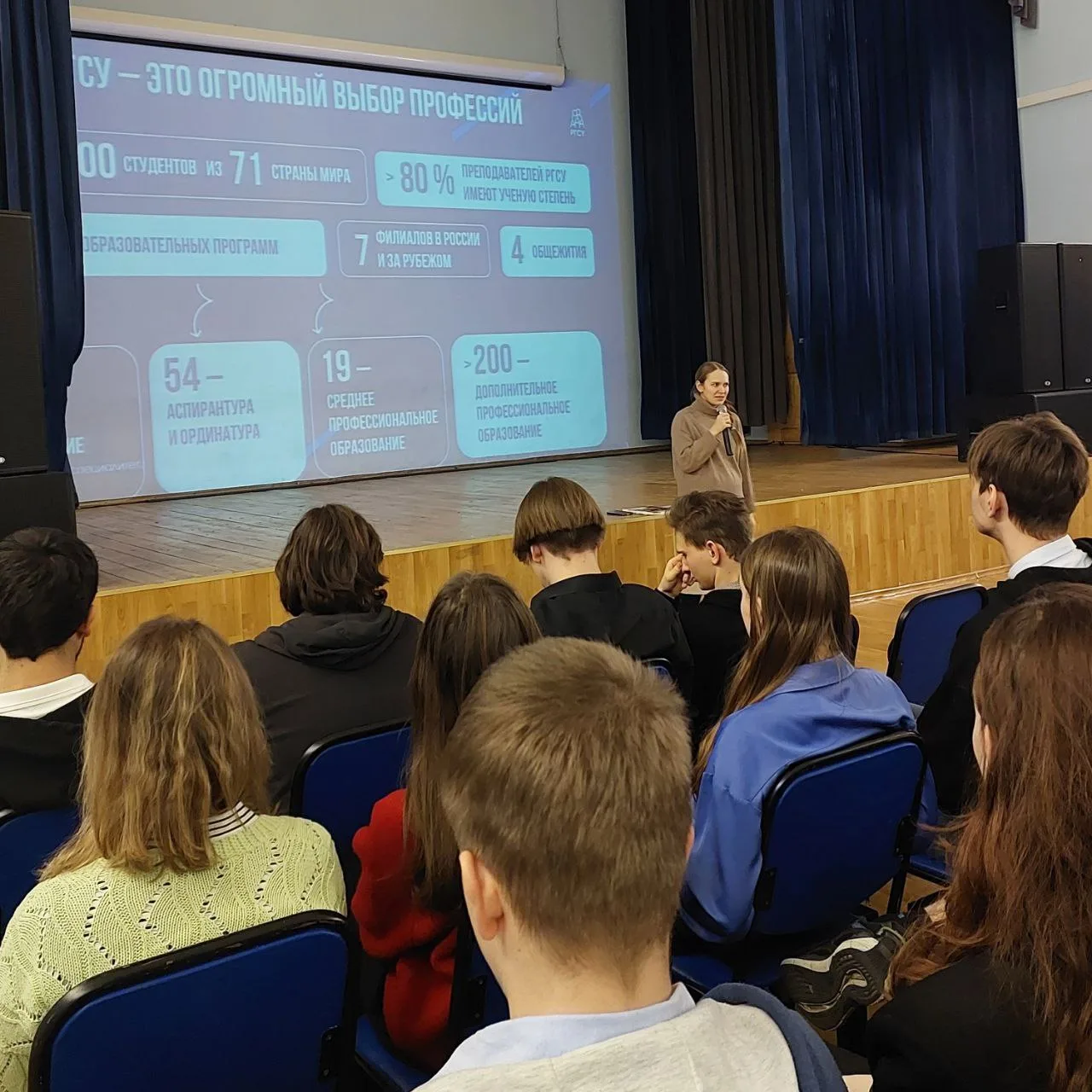 В рамках мероприятия студенты и преподаватели вуза рассказали ребятам о направлениях подготовки, возможностях трудоустройства и перспективах карьеры выпускников РГСУ. Особое внимание уделили специальностям, связанным с социальной работой, психологией, педагогикой и юриспруденцией.