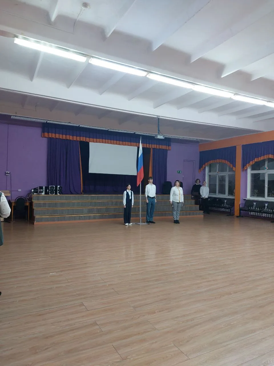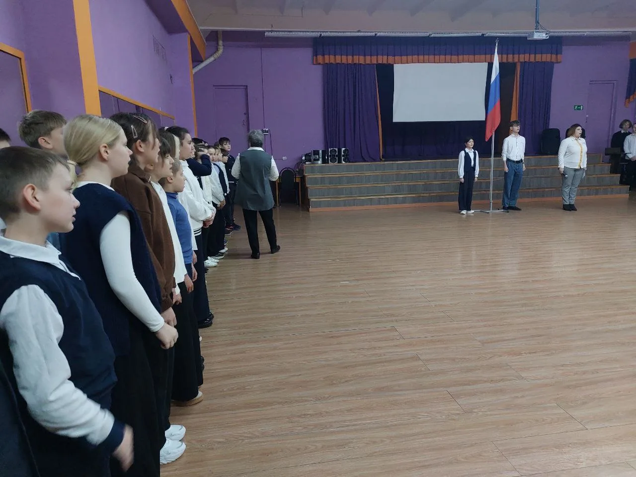 Утро понедельника началось с традиционной торжественной линейки, церемонии поднятия флага и исполнения гимна РФ! 🇷🇺