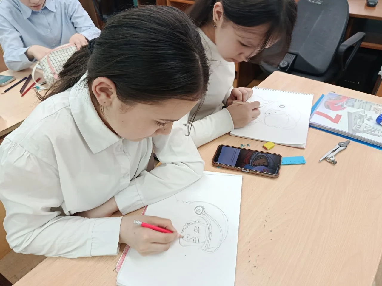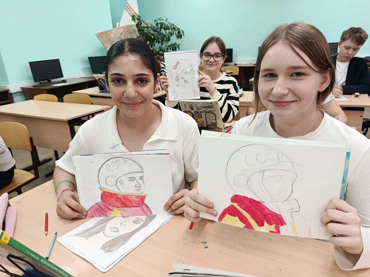 С большим интересом ребята рисовали рисунки, вдохновлённые подвигом Гагарина. Каждый из них смог выразить свои эмоции и мысли о космосе через творчество. 🎨✨