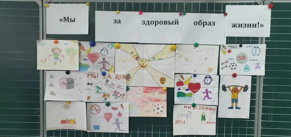 Для учеников младших классов был организован конкурс рисунков под названием «Мы за здоровый образ жизни». Ребята активно включились в творческий процесс, демонстрируя своё понимание важности правильного питания, занятий спортом и отказа от вредных привычек.