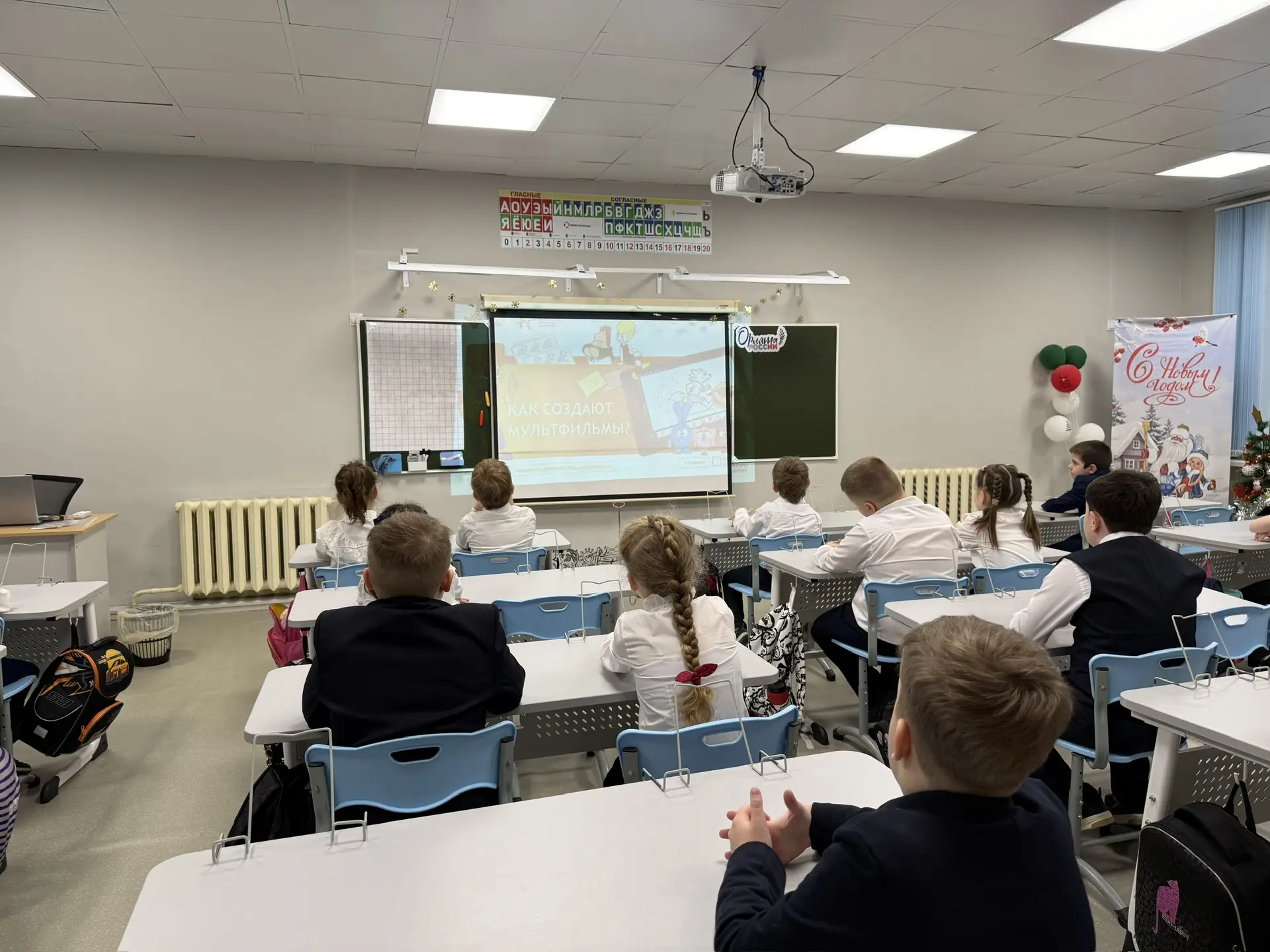После новогодних каникул мы снова встретились с нашими любимыми учениками на еженедельной линейке, вынесли флаги и пообщались на внеурочном занятии «Разговоры о важном»❄️🎓