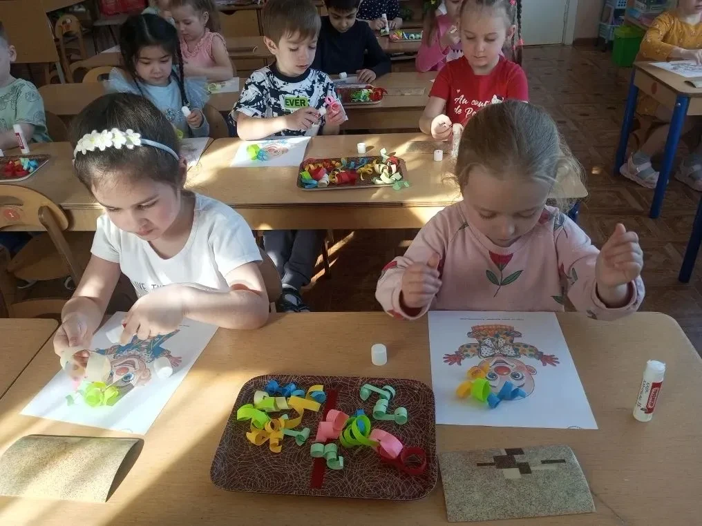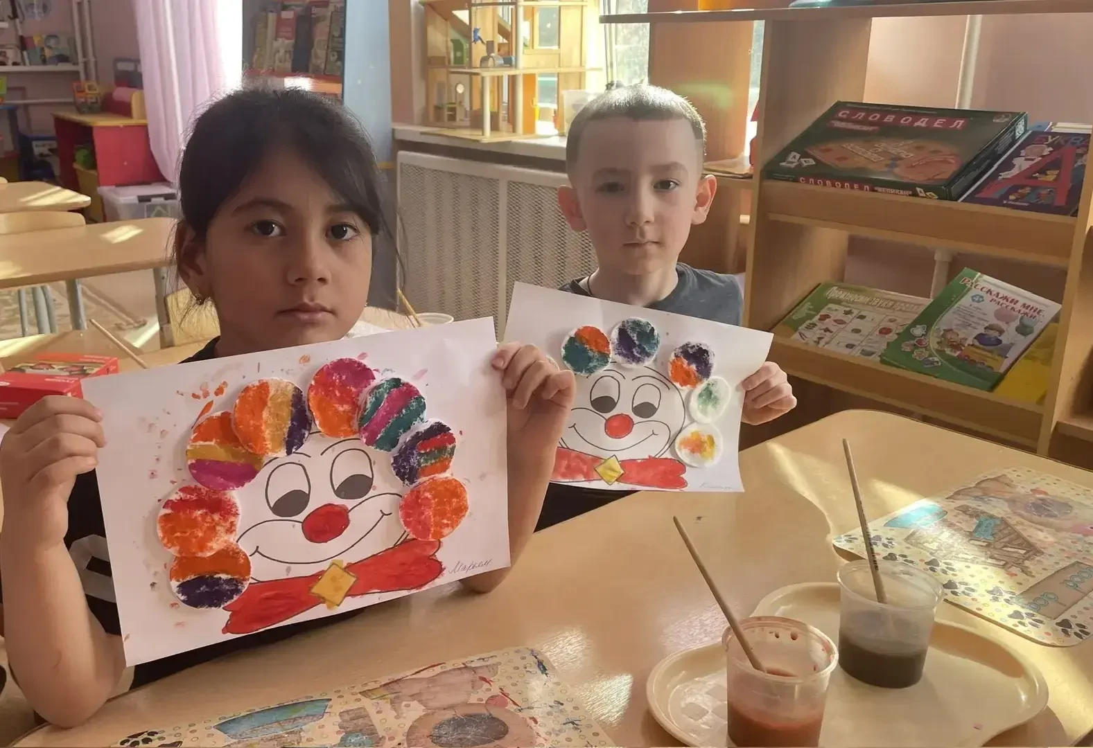 Дошкольники старших групп МОУ Чулковской СОШ № 20 (ДО 50) сделали аппликацию «Веселый клоун» с применением нетрадиционных материалов. В старшей группе № 1 ребята сделали парик клоуна из бумажных цветных полосок, а в старшей группе № 2 – из ватных дисков. Все клоуны получились яркими, веселыми и объемными.