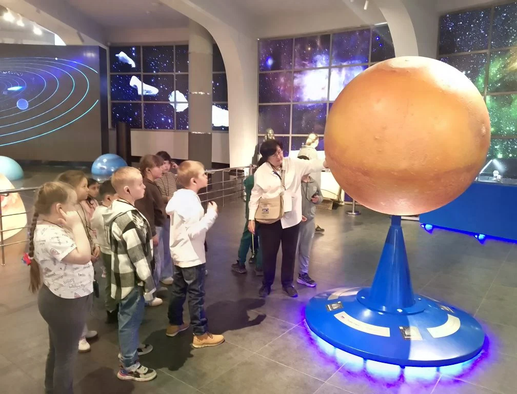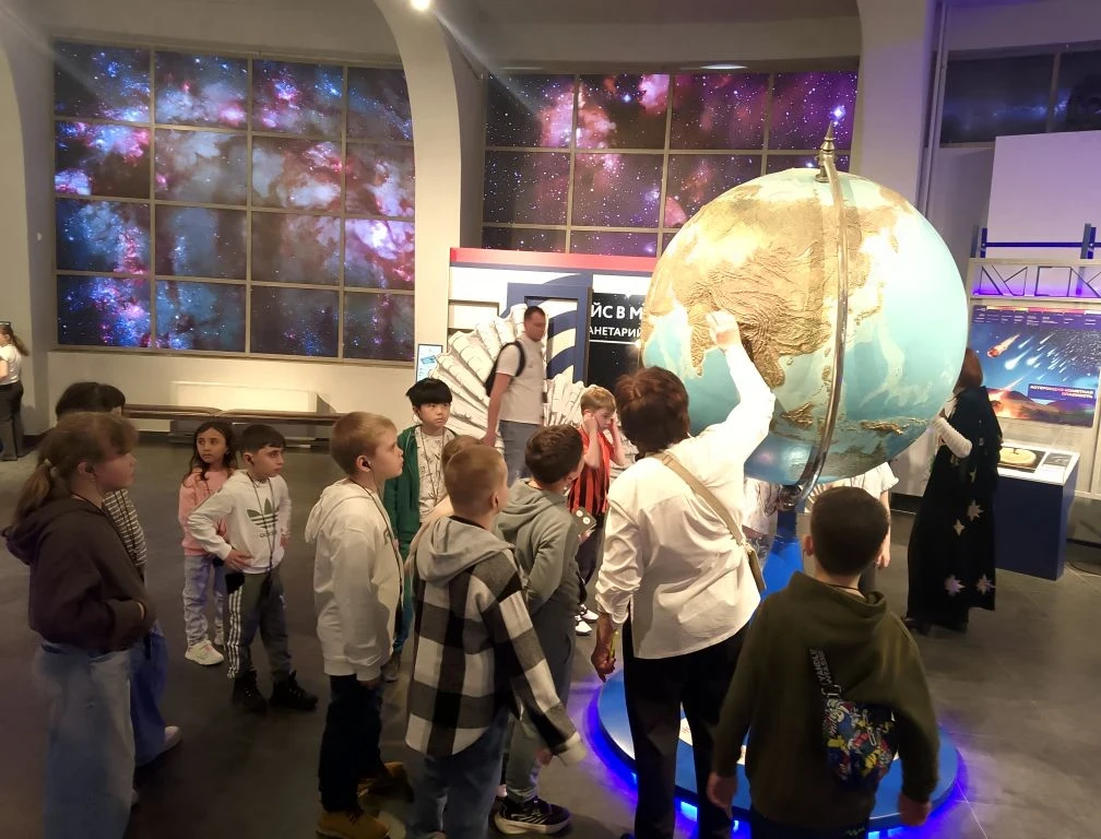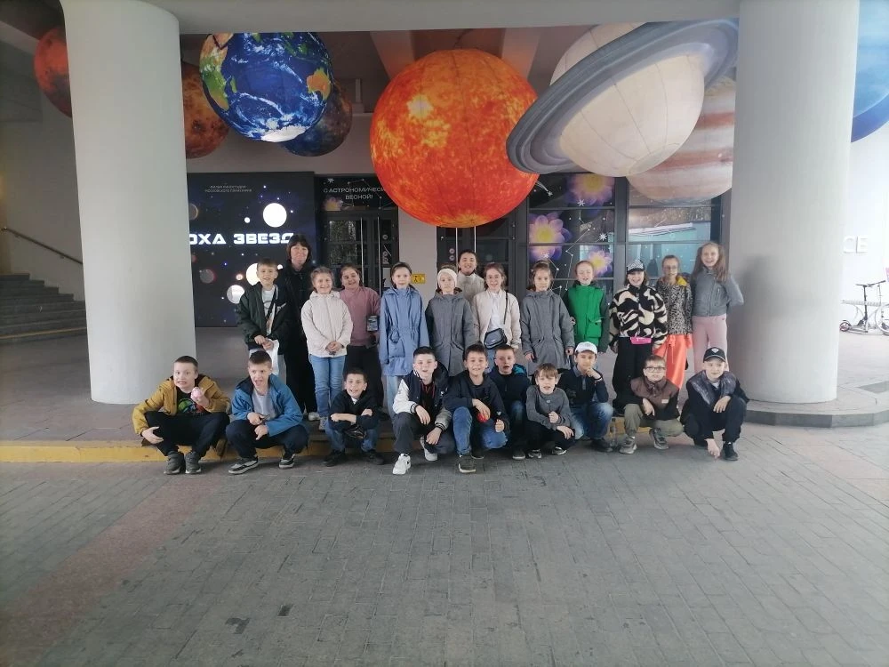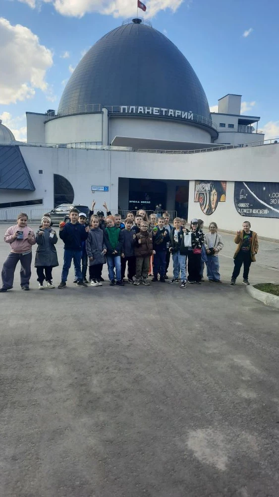 🚀 В рамках первой в России «Недели космоса», приуроченной к 65-летию полёта Юрия Гагарина, обучающиеся Мячковского филиала школы (учителя Костелей О.Н., Седых Н.В.), ученики 1В и 3 В классов (учителя Рязанова Н.С., Орехова М.Г.) посетили Московский планетарий.