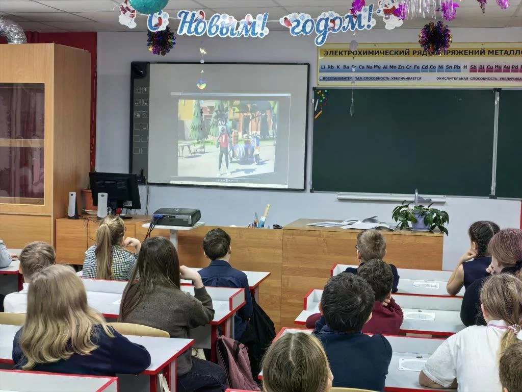 ⚪Сегодня, 12 января, первый учебный день в 2026 году начался с поднятия Флага и исполнения Гимна России, а также внеурочного занятия «Разговоры о важном», которое было посвящено теме «Как создают мультфильмы?».