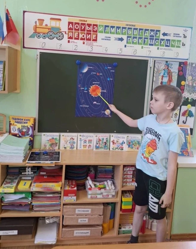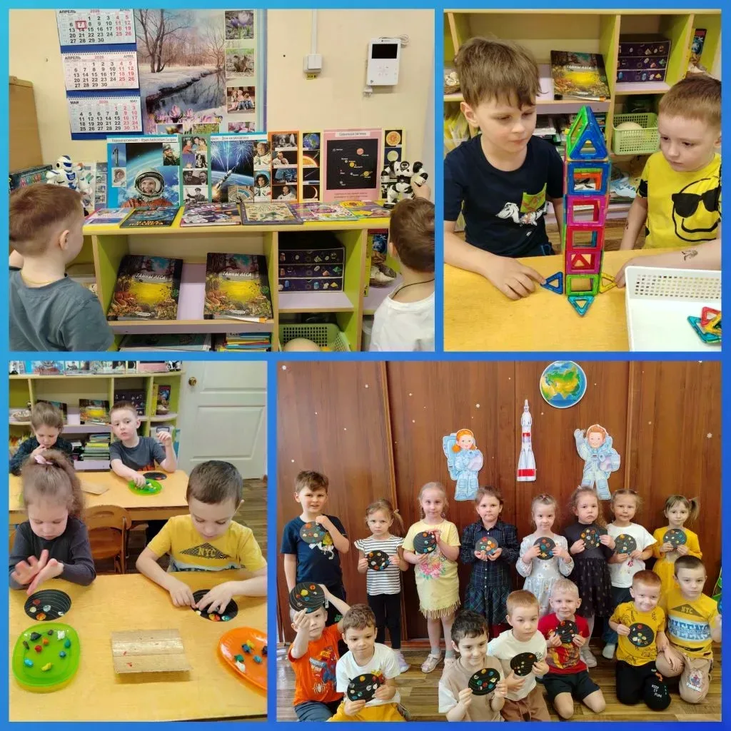 Проведенные занятия и беседы были направлены на развитие познавательных и творческих способностей воспитанников, которые осуществлялись через различные виды детской деятельности – чтение рассказов о космосе, планетах, космонавтах, создание макета «Солнечная система», выставка детских рисунков на тему «День космонавтики», конструирование ракет.