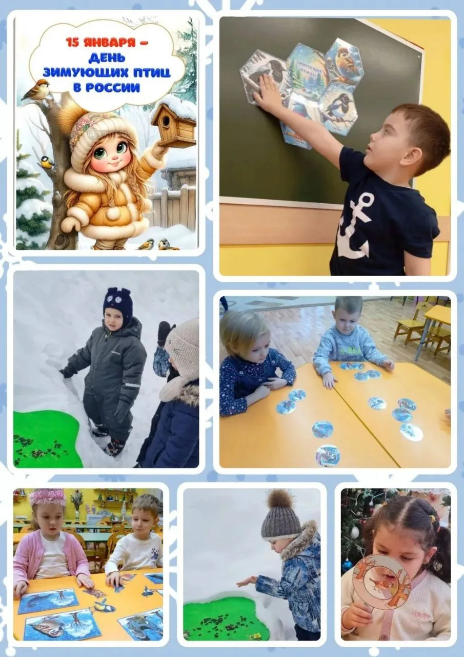 Сегодня в МОУ Чулковская Сош 20 ( ДОУ 73) во всех группах прошел познавательный тематический день, посвященный заботе о пернатых друзьях. Ребята узнали, что 15 января официально отмечается День зимующих птиц в России. С помощью интерактивных игр ребята узнали о видах зимующих птиц. Дети выступили в роли докладчиков, рассказывая о жизни снегирей, синиц и поползней.