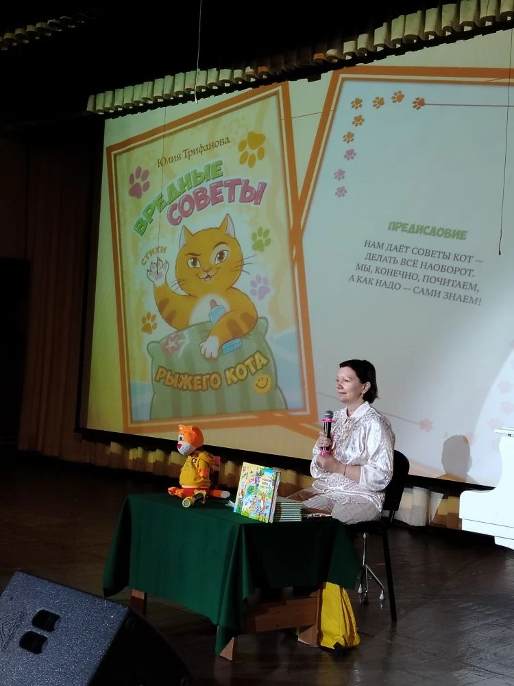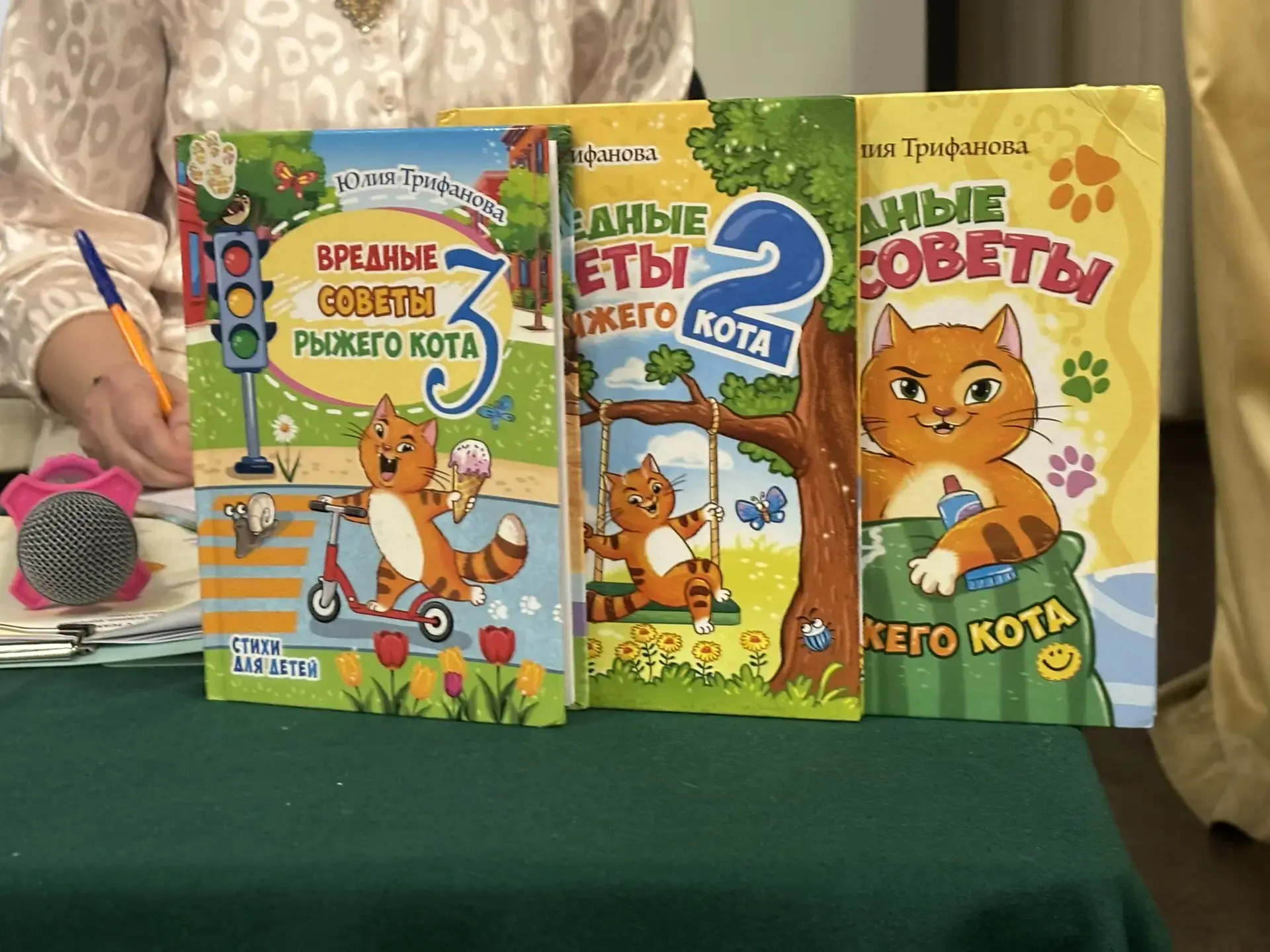 Она рассказала о том, как начала писать стихи для детей и представила свои книги «Советы вредного кота». Это весёлые и поучительные истории о том, что такое хорошо и, что такое плохо.