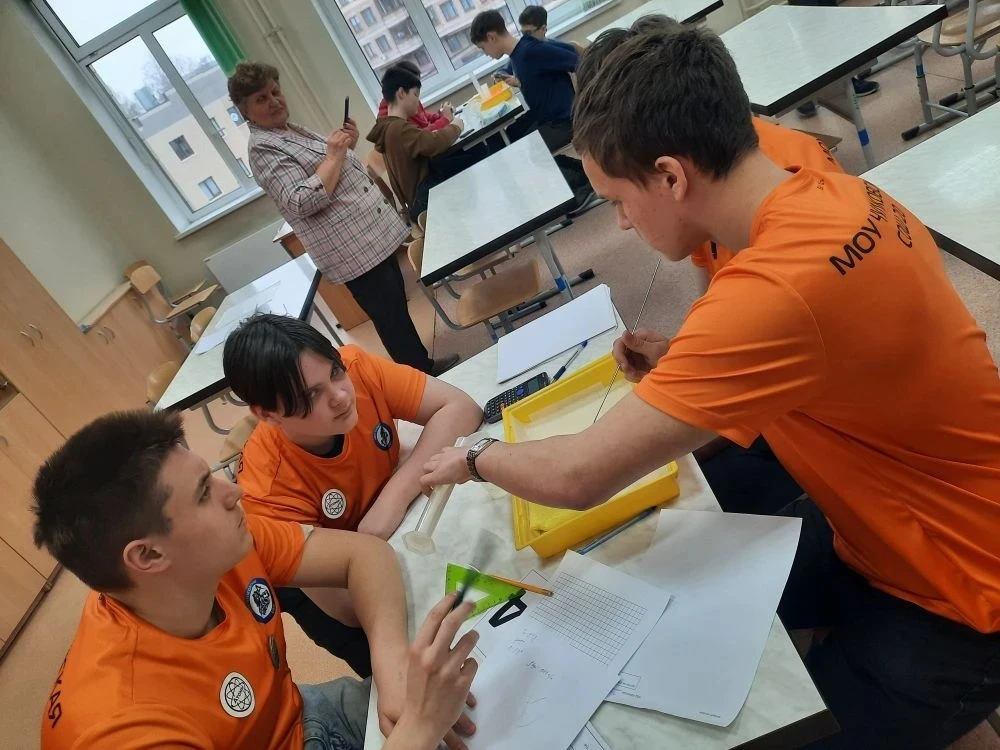 Нашу школу представляла команда 8В класса: Бессараб Николай, Поликарпов Василий, Эйрих Альберт. Шарабаров Дмитрий (руководитель - учитель физики Корнилова М.А.) .