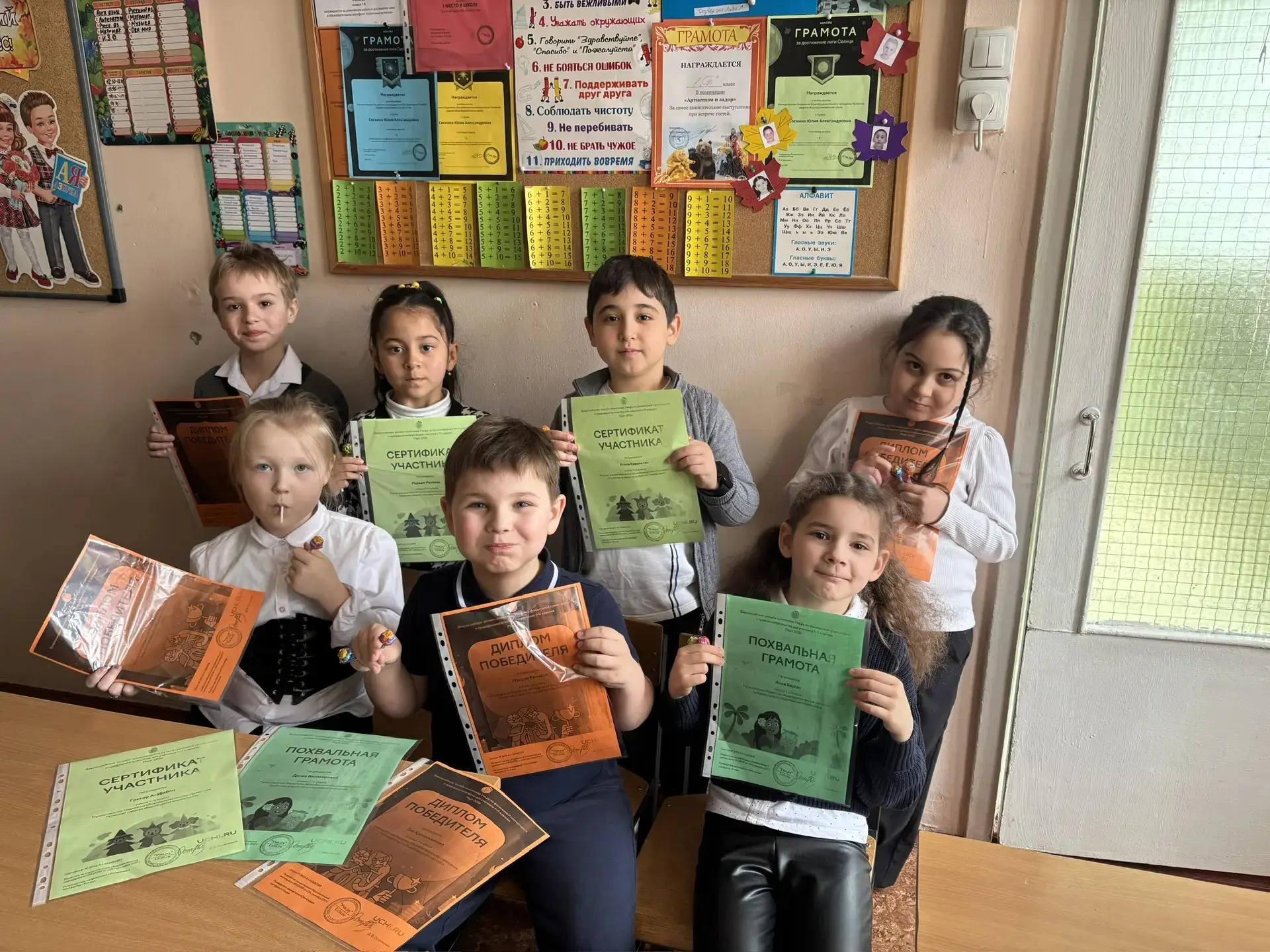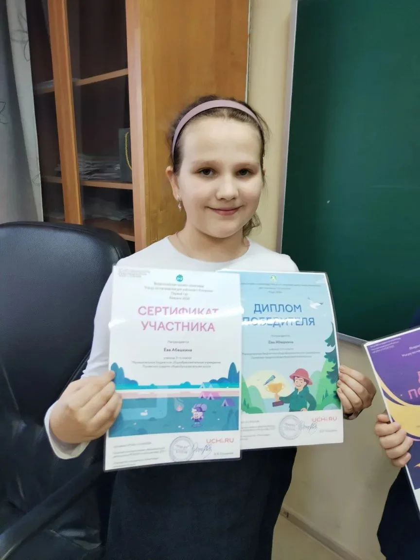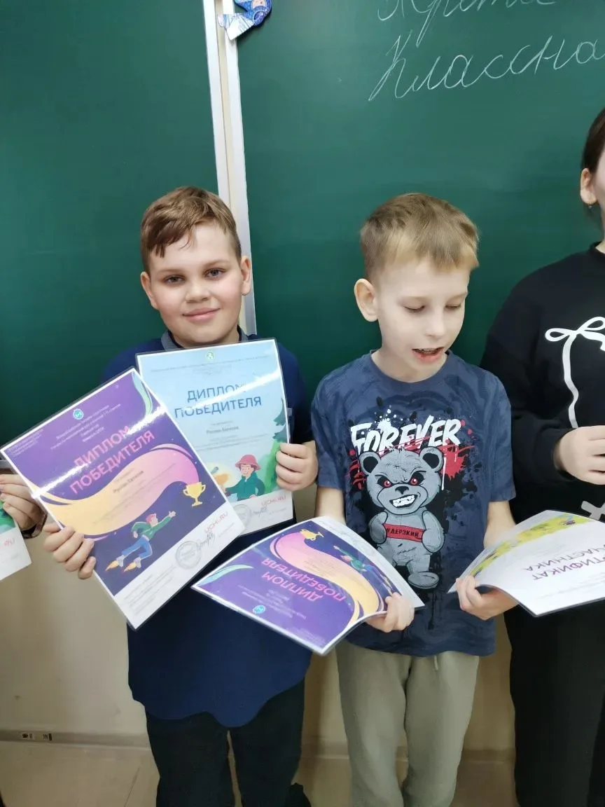 🙌Ученики 3 «В» получили дипломы за участие в олимпиадах на платформе «Учи.ру»!