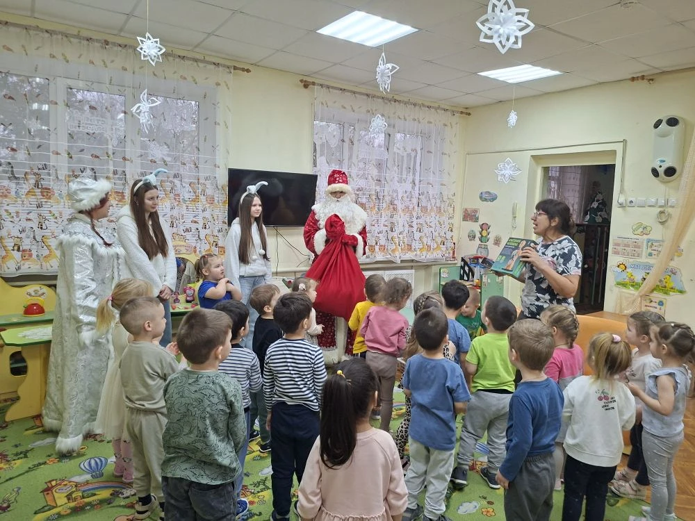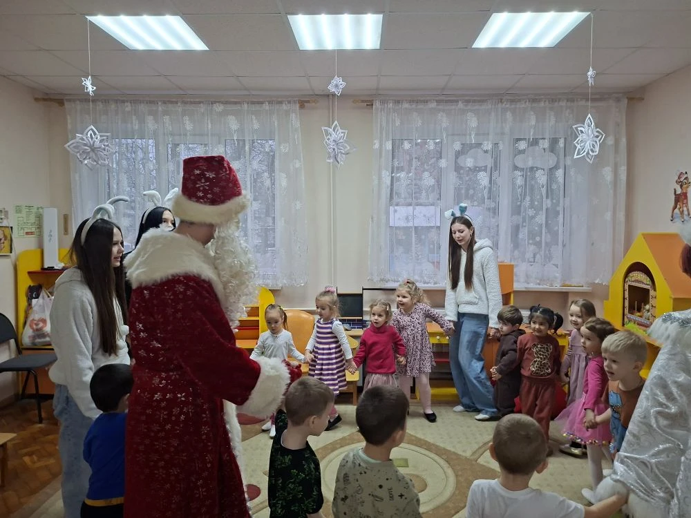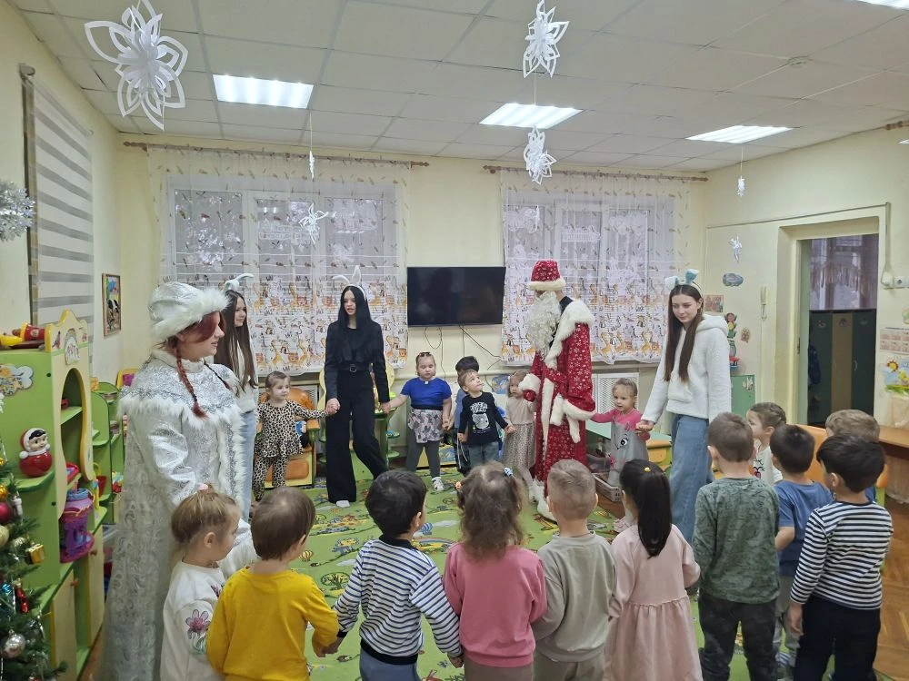 ❄️Ребята отправились в детский сад, чтобы подарить маленьким воспитанникам настоящее новогоднее чудо. Встреча получилась тёплой и по‑настоящему праздничной: школьники с радостью играли с малышами, а затем все вместе закружились в весёлом хороводе.