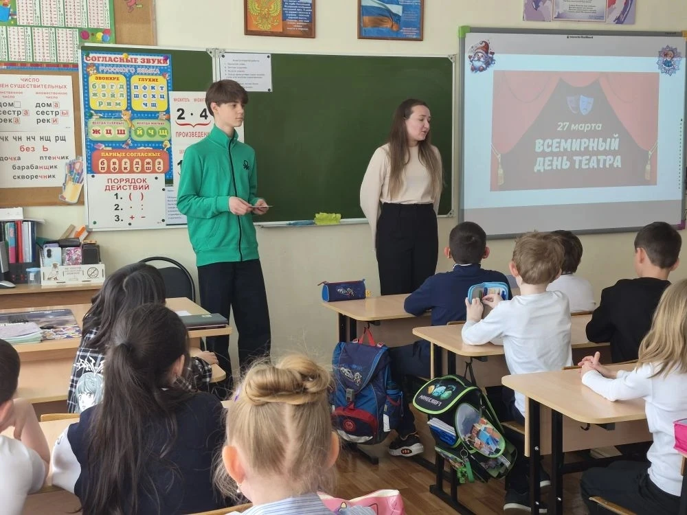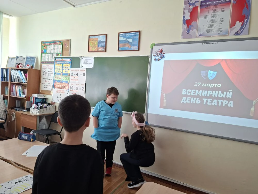 📍В преддверии Всемирного дня театра в нашей школе прошла увлекательная активность в рамках всероссийской акции Движения Первых «В мире театра», организованная советником директора по воспитанию Кондрашовой А. О. и руководителем школьного театра Машковцевым Матвеем.