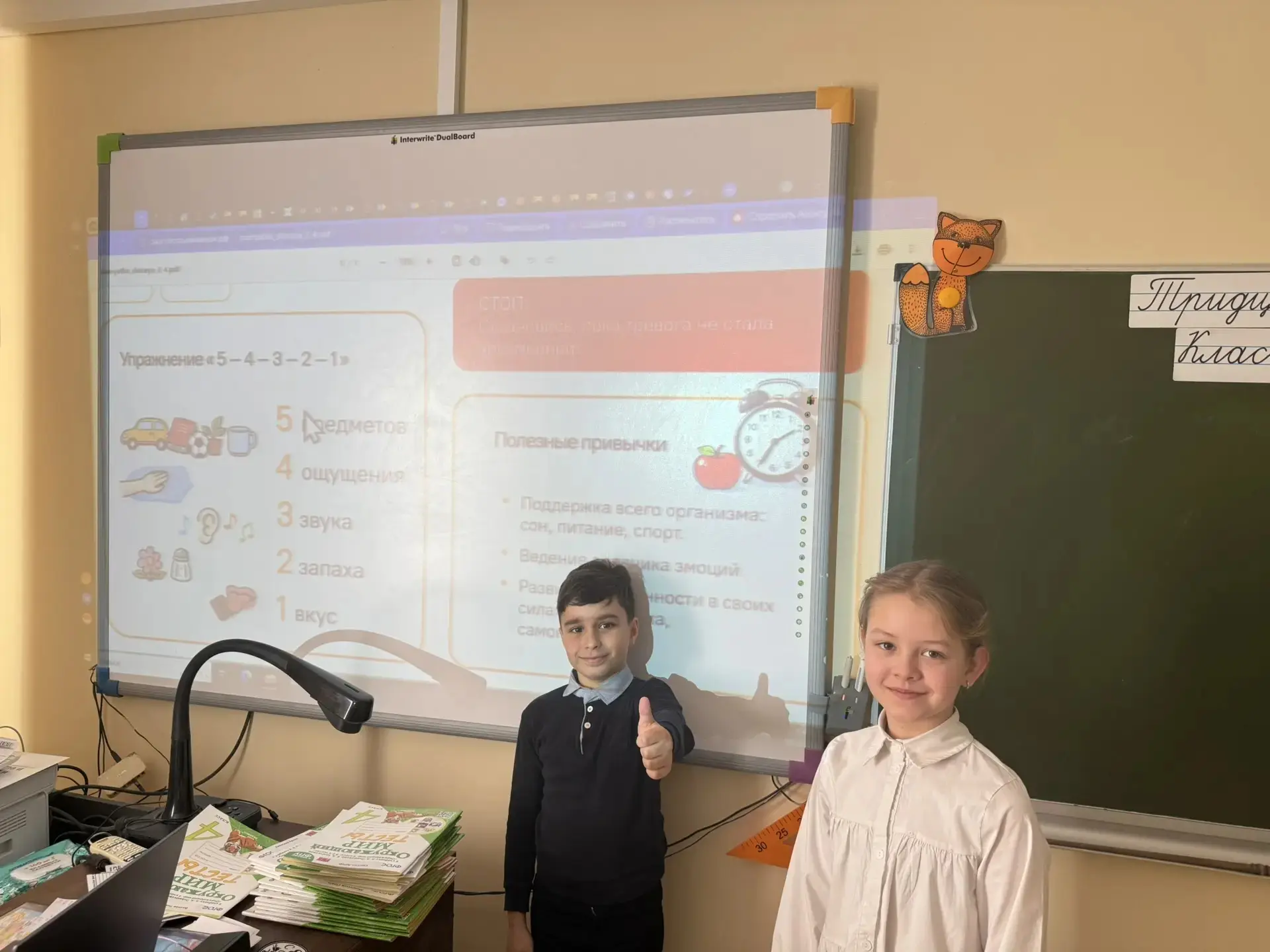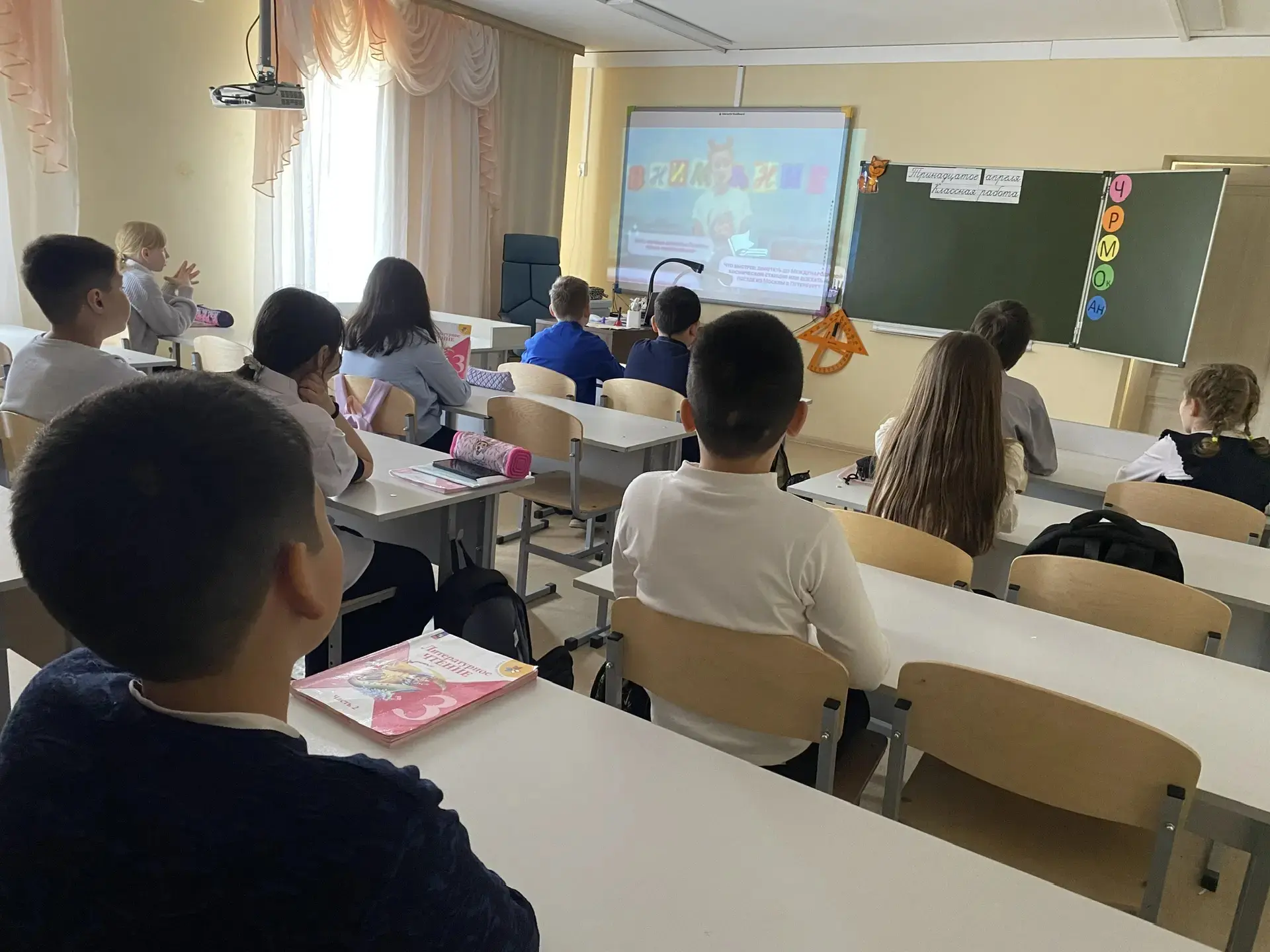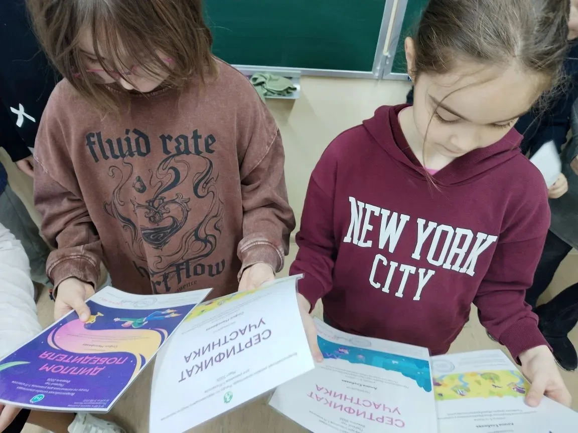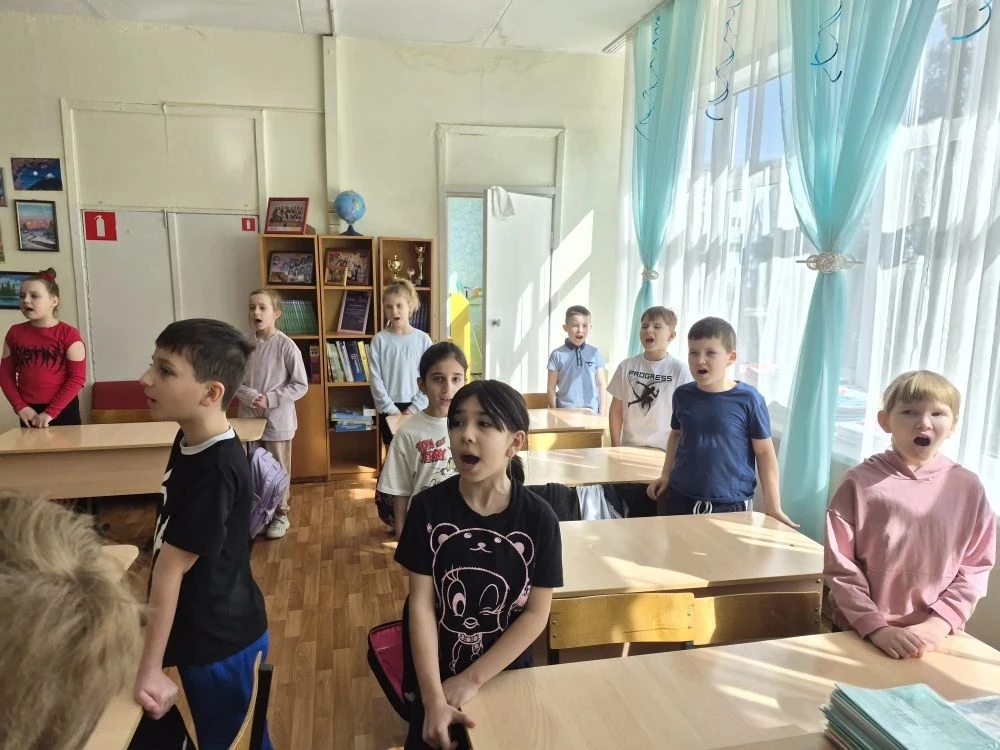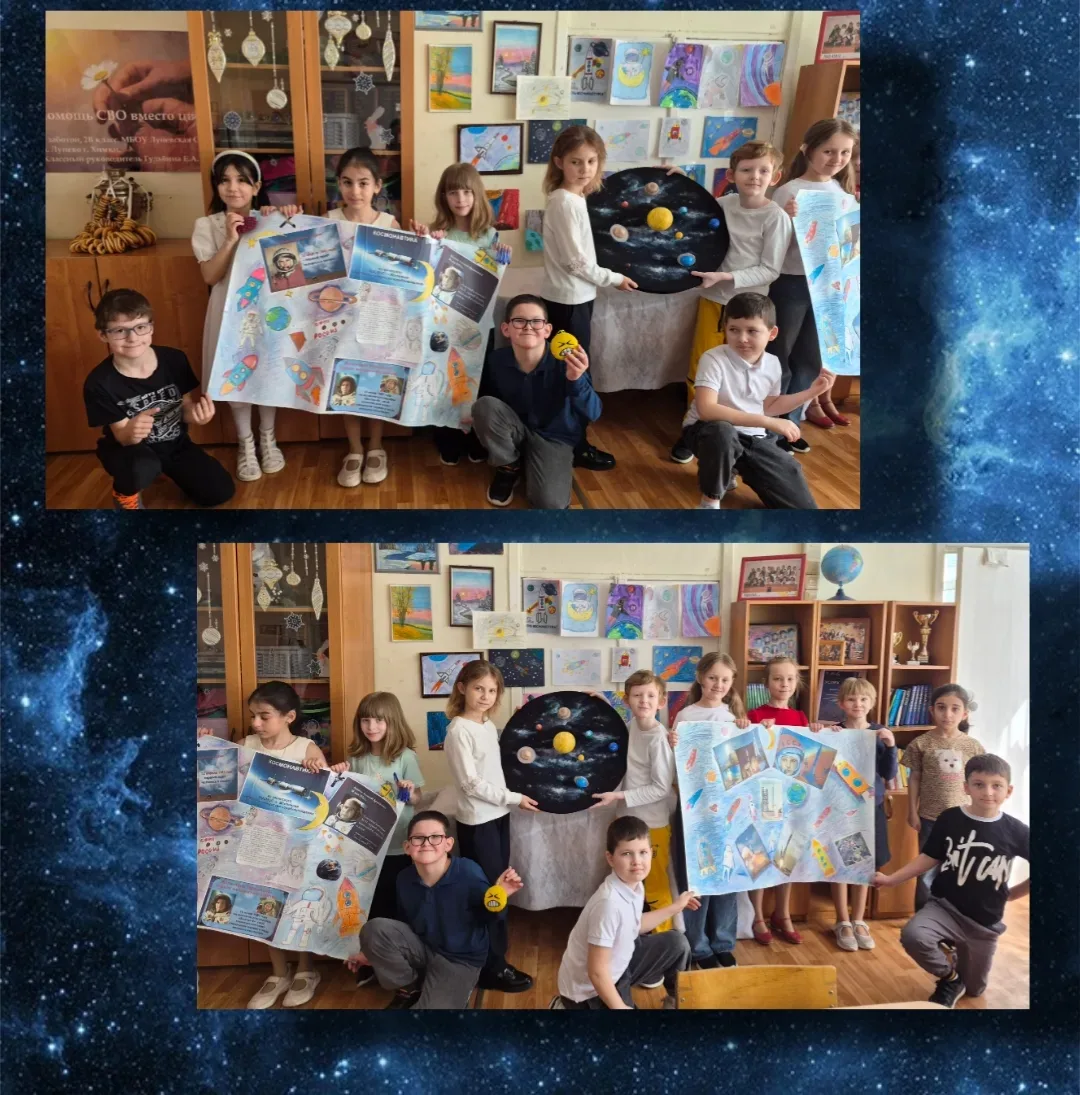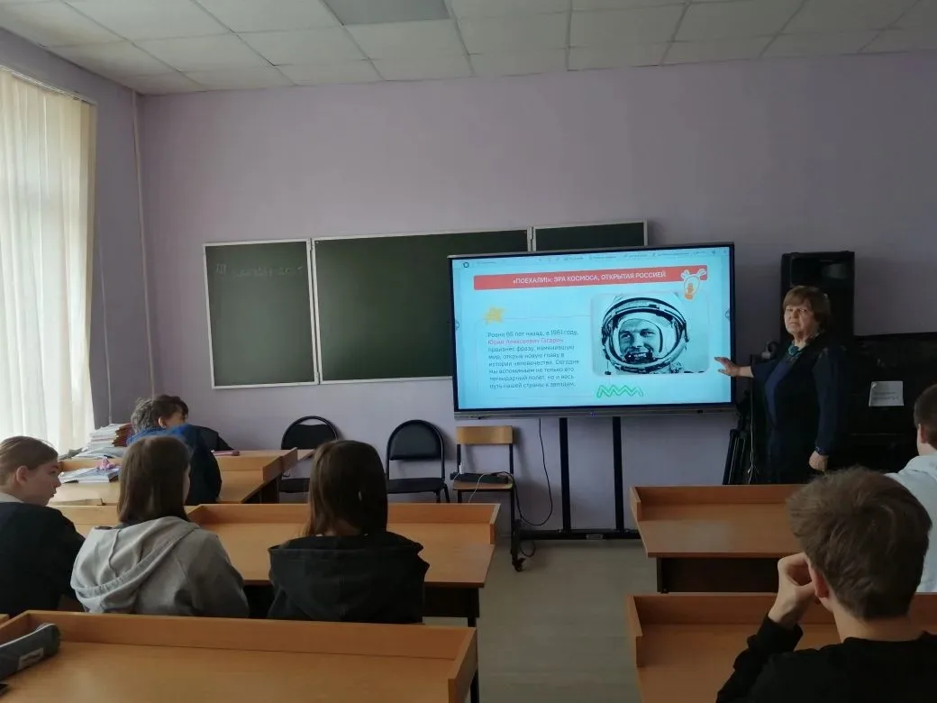 На классном часе второклассники отправились в виртуальное путешествие. Они узнали, что первыми космонавтами-исследователями были собаки Белка и Стрелка, а также вспомнили, кто произнёс легендарное «Поехали!». Ребята с удивлением услышали, что полёт Юрия Гагарина длился всего 108 минут.