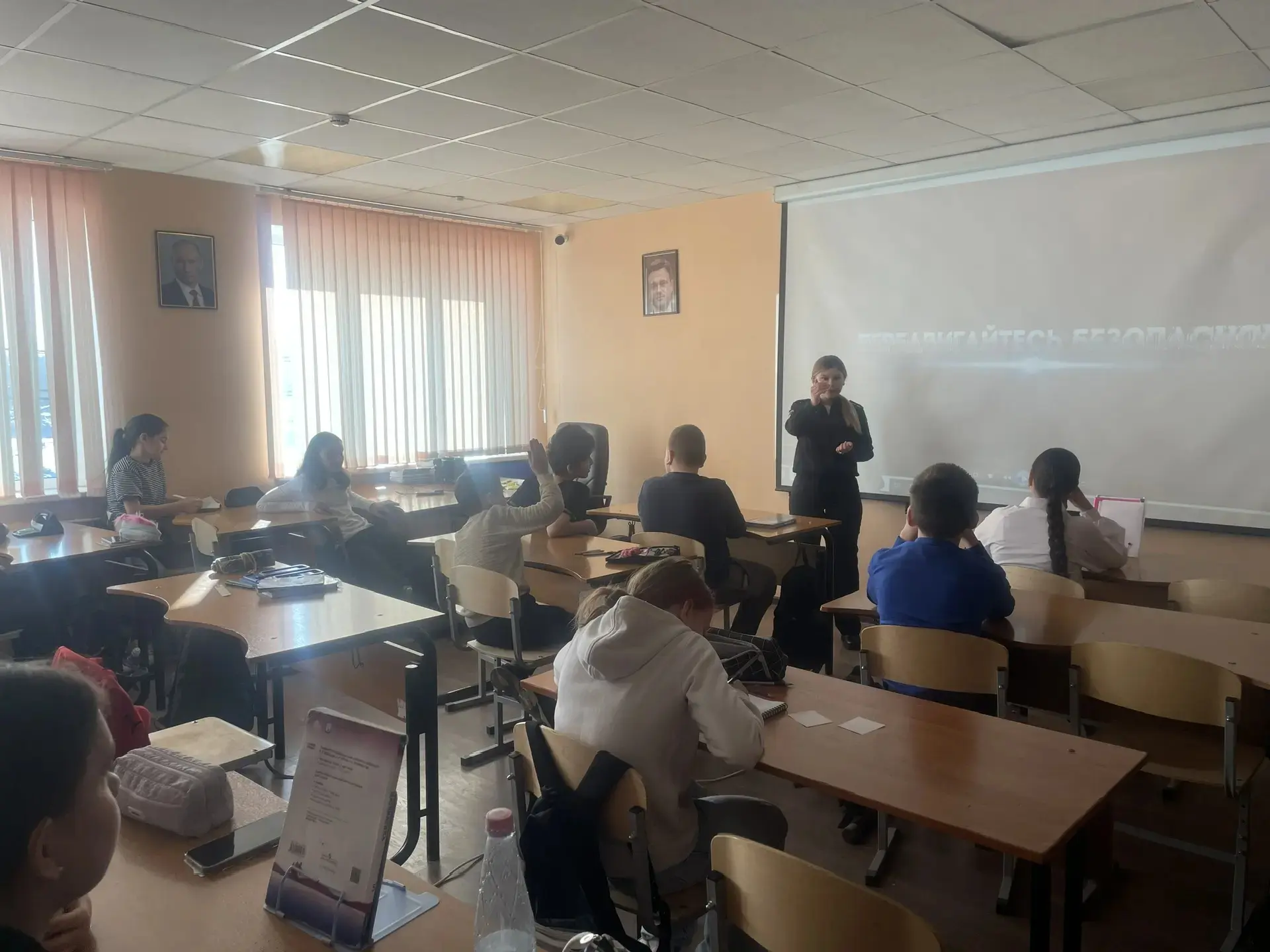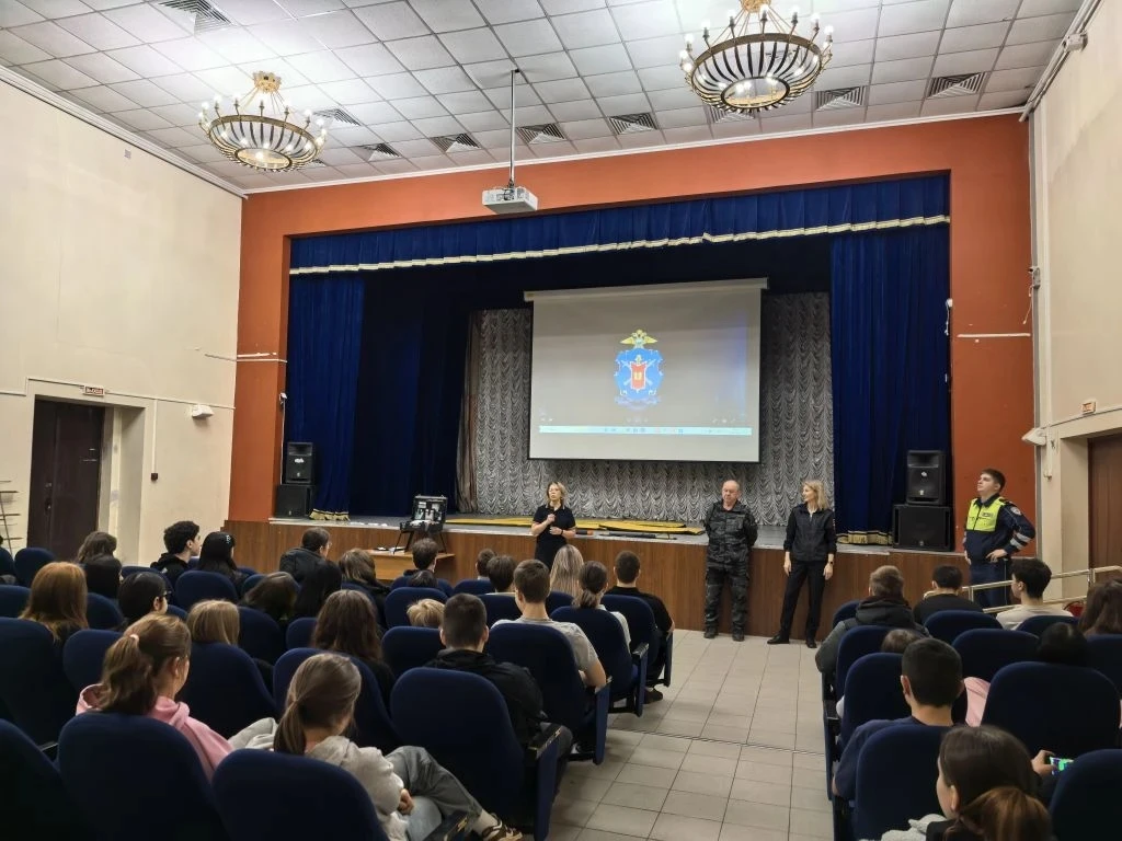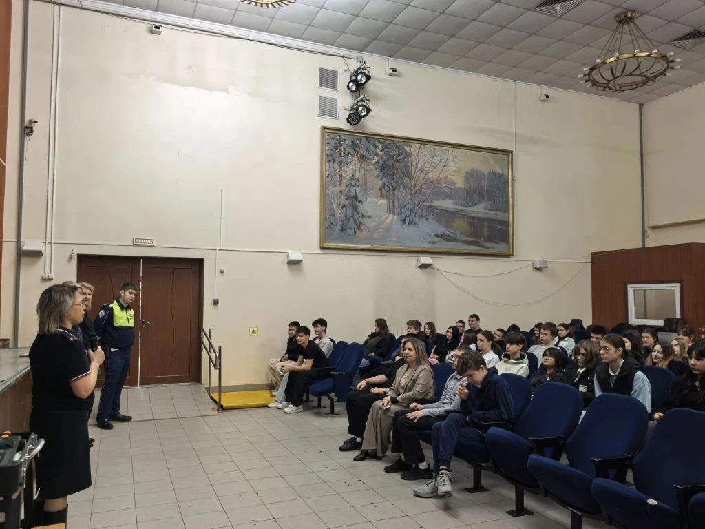Старший лейтенант полиции Ангелина Сергеевна, инспектор по пропаганде БДД и младший лейтенант полиции Андрей Александрович, инспектор ДПС, встретились с учениками средней школы.