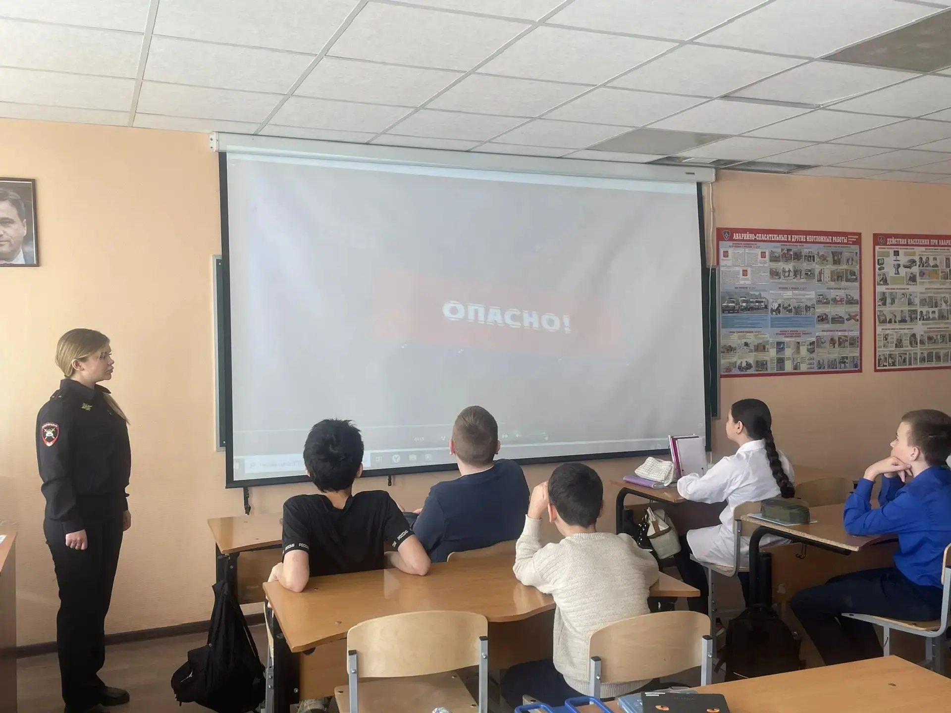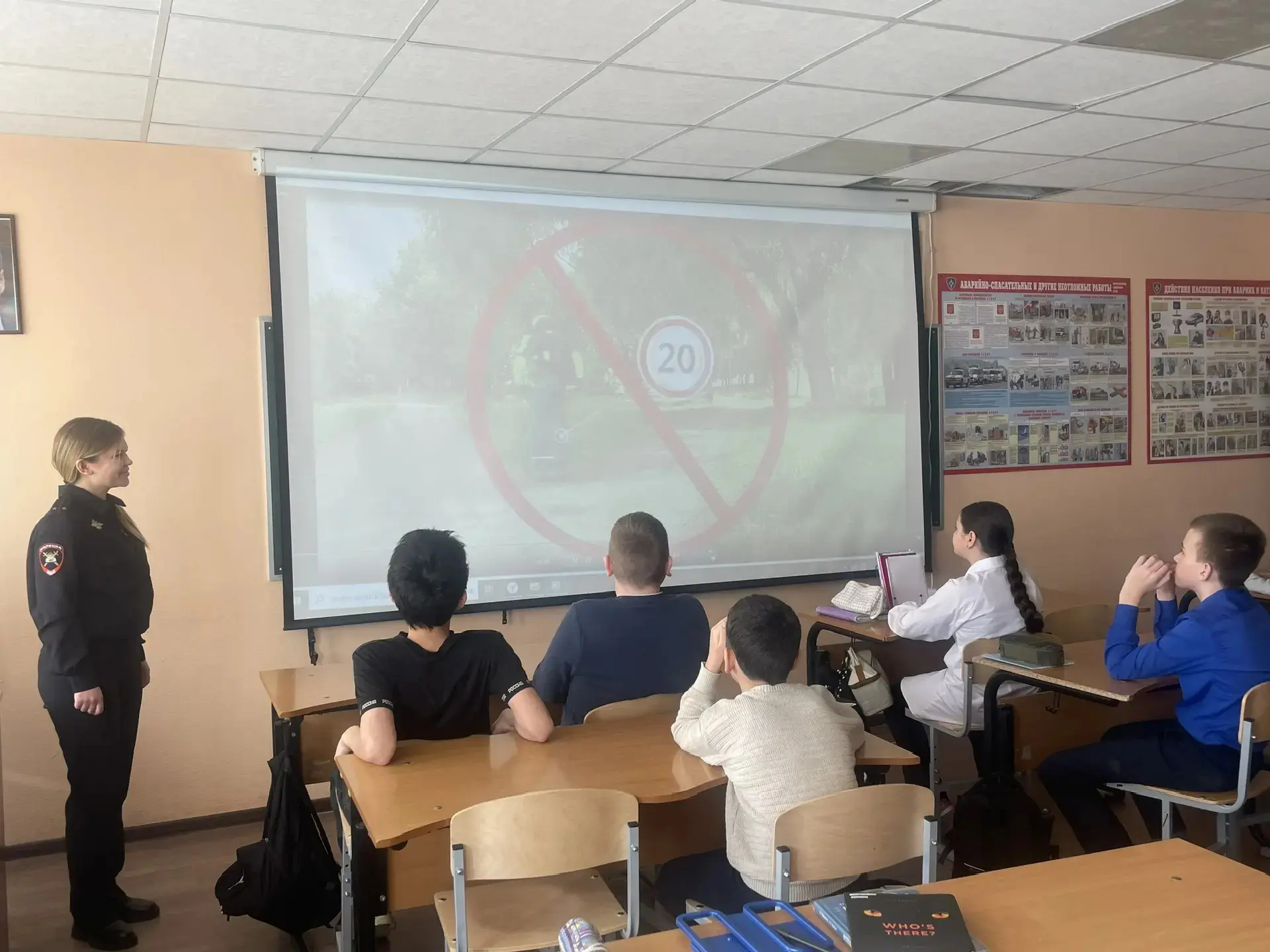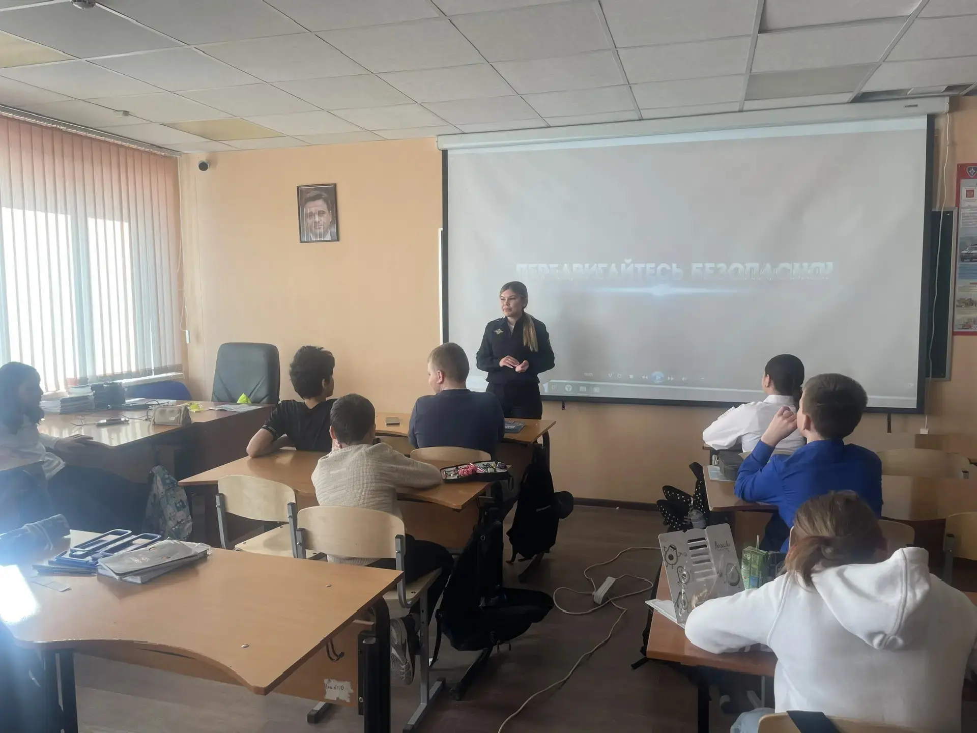 Старший лейтенант полиции Ангелина Сергеевна, инспектор по пропаганде БДД и младший лейтенант полиции Андрей Александрович, инспектор ДПС, встретились с учениками средней школы.