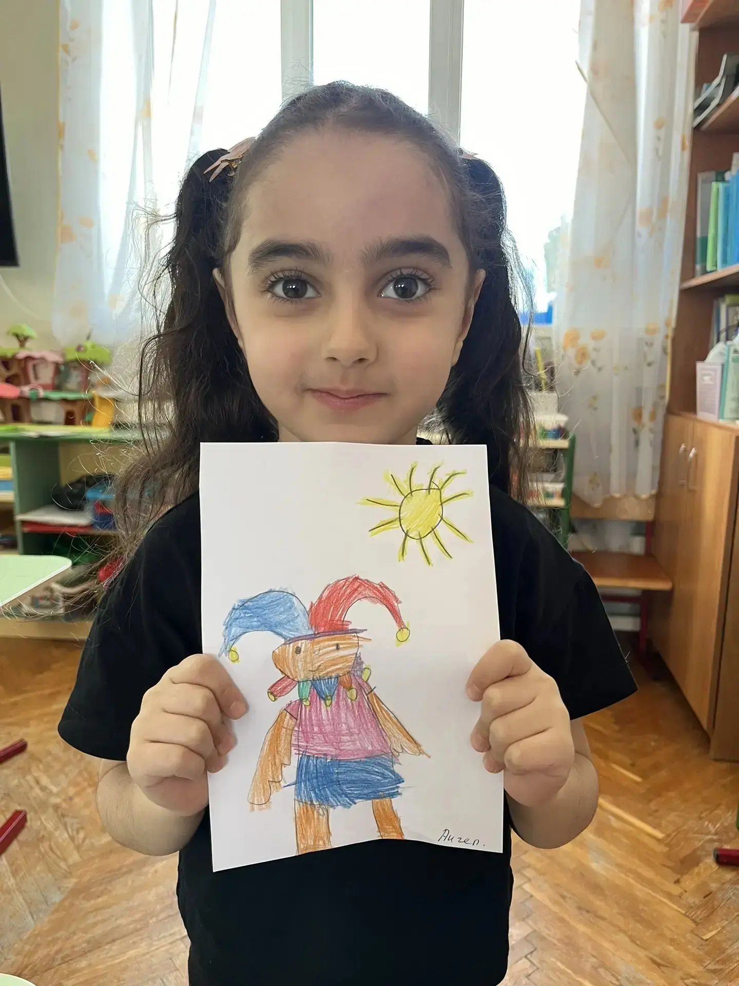 В конце занятия дети нарисовали петрушку, любимого героя детских спектаклей.