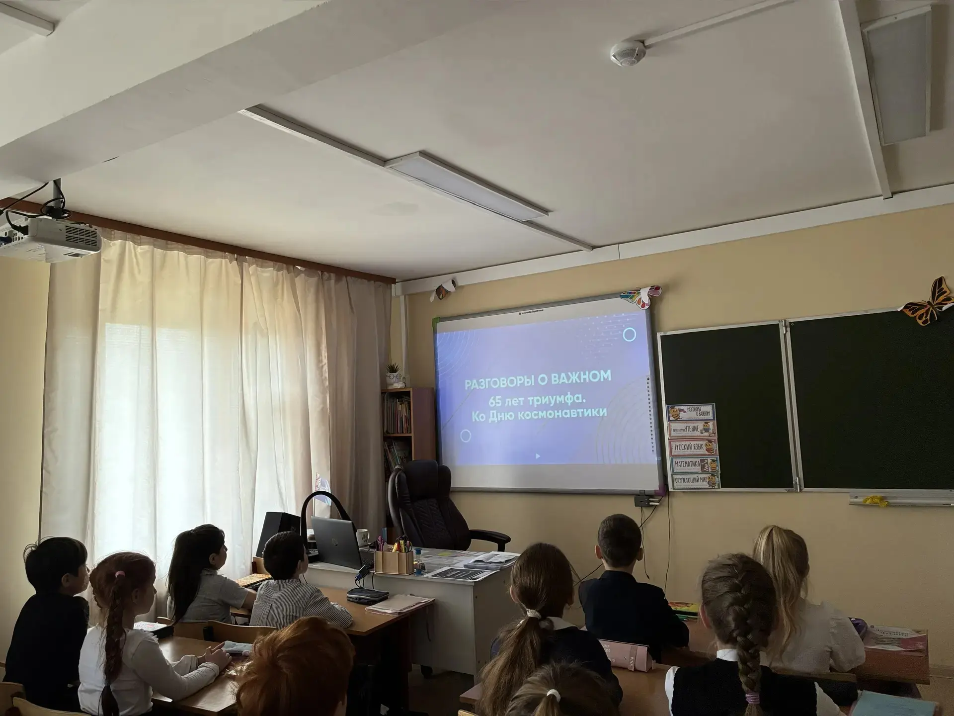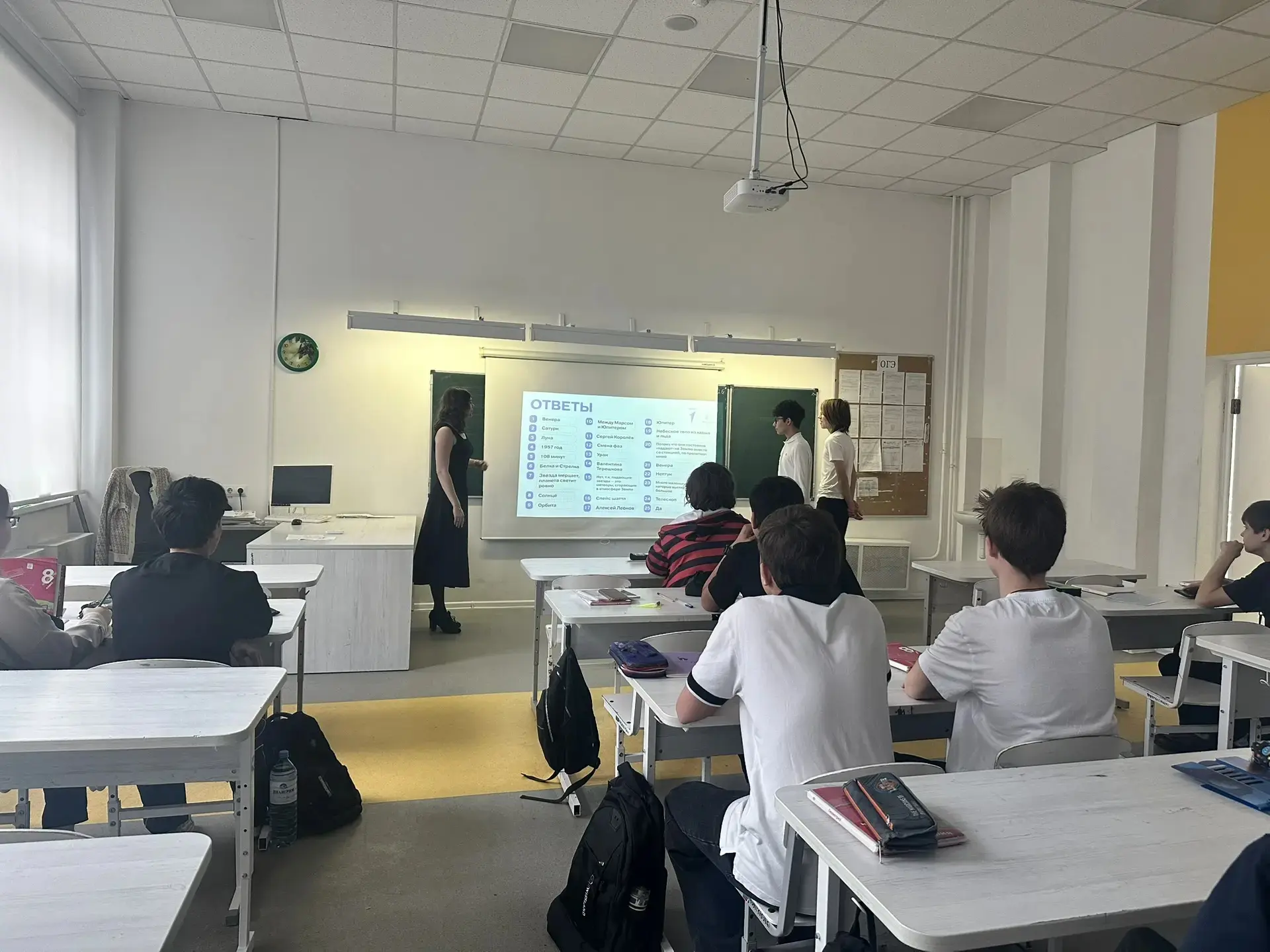 Учащиеся активно участвовали в обсуждении, делились мечтами о космосе — возможно, кто‑то уже выбрал будущую профессию.