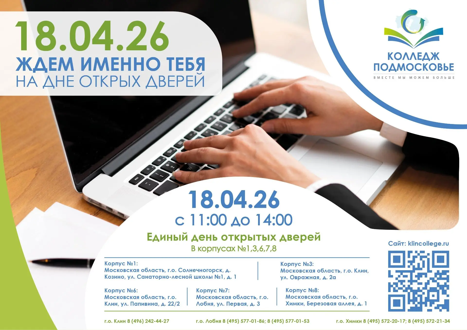 🎓 Колледж «Подмосковье» приглашает посетить День открытых дверей –