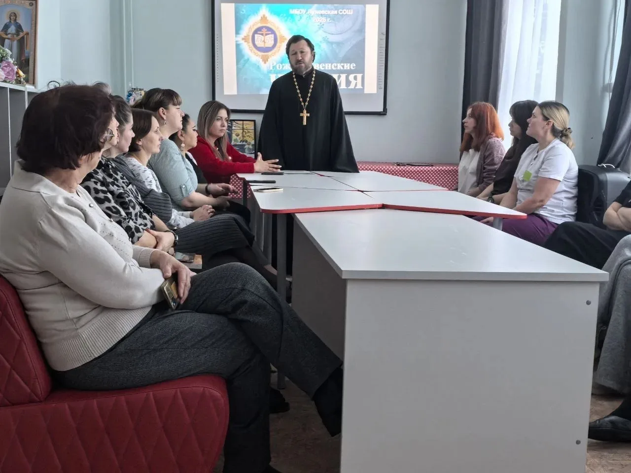 26 декабря в центре "ПОКРОВ" при МБОУ Луневская СОШ состоялось мероприятие в рамках Рождественских образовательных чтений, направленное на укрепление духовных и нравственных основ в системе образования. Настоятель Покровского храма д. Мышецкое г.о. Химки, протоиерей Александр Азаров, провел содержательную лекцию - беседу для преподавательского состава во главе с директором МБОУ Луневская СОШ, члена Общественной палаты г.о.Химки - Н.Г.Славиогло. Тема встречи - "Образование и духовность: как сохранить традиционные ценности в образовательном процессе и воспитать поколение, которое будет уважать нравственные устои" - приобрела особое значение в контексте современных вызовов, с которыми сталкивается система образования.