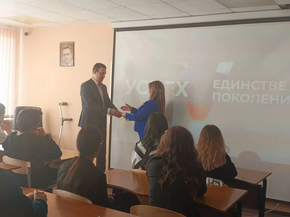 03 апреля 2026 г. в МБОУ Лунёвская СОШ проведено значимое патриотическое мероприятие "УСПЕХ V Единстве поколений" на тему: "Провозглашение Донецкой Народной Республики, 2014 год". На мероприятии присутствовали: директор школы, член Общественной палаты Московской области - Славиогло Н.Г, лидер Движения общественной поддержки - Блинов А.В., участник СВО - Зенькович А.Т. В видеообращении поприветствовала гостей лидер Движения общественной поддержке - Кавторева Т.И. Участникам мероприятия продемонстрировали документальный фильм "Освобожденные территории - линия жизни", рассказали о истории становления Дня провозглашения Донецкой Народной Республики. В ходе мероприятия были вручены благодарственные письма: представителю педагогической династии Шапкиной Ю.В.; активному гражданину, осуществляющему патриотическое воспитание молодежи, волонтеру Макушевой Н.Н.; удостоверение сторонника партии "Единая Россия" вручено Славиогло Н.Г.