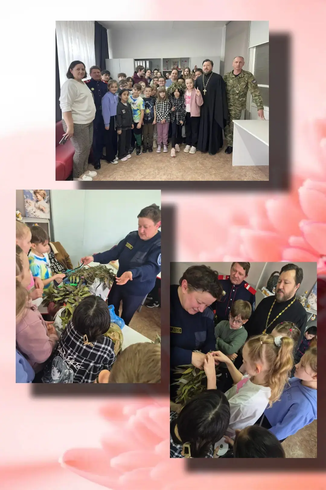 Далее казаки Анна Закорюкина и Петр Семенов провели для детей увлекательный мастер-класс по плетению нашлемников и маскировочных плащей. 🛡️🧵 Это не только творческое занятие, но и возможность лучше понять важность этих средств защиты для наших защитников.