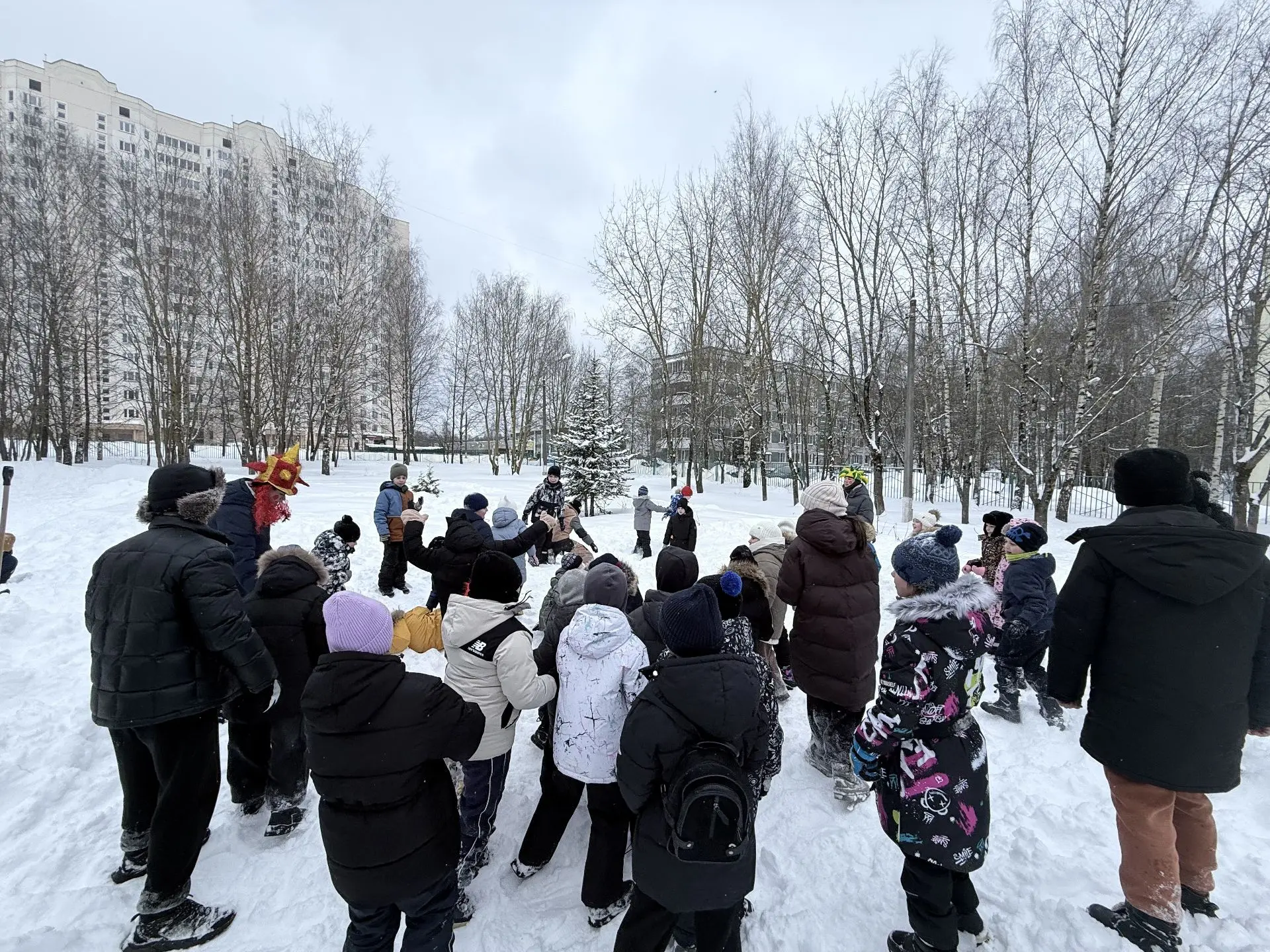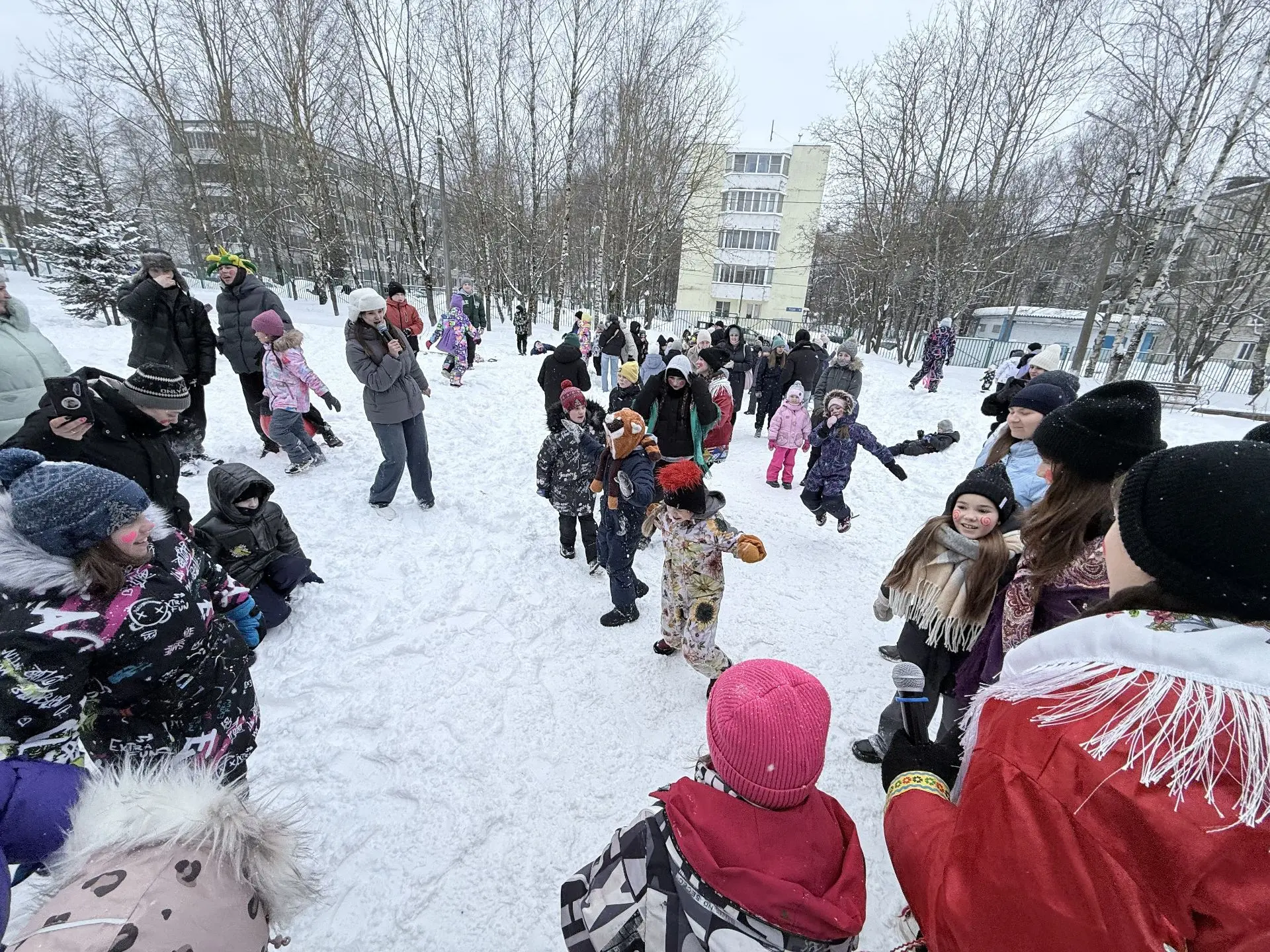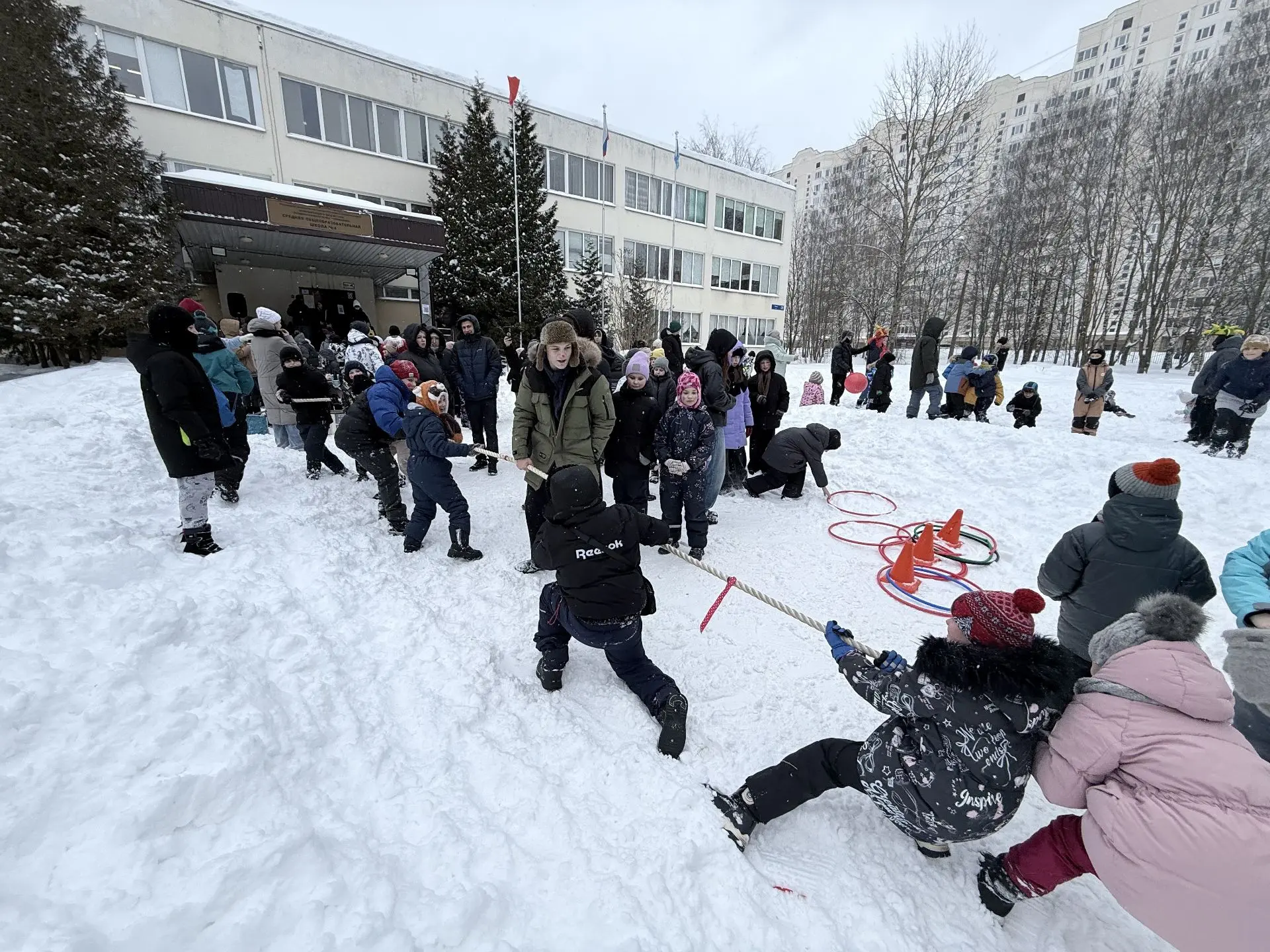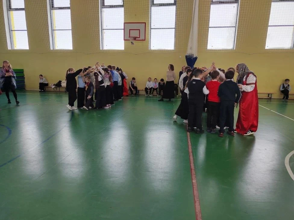 Во дворе школы развернулось настоящее веселье: ребята водили хороводы, играли в ручеёк, перетягивали канат и соревновались в ловкости. Смех и радость не стихали ни на минуту!