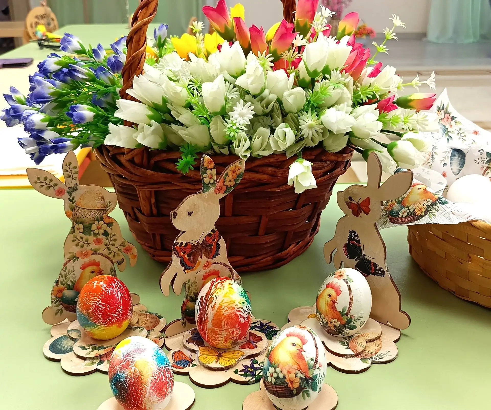 Каждый участник своими руками создал уникальное декоративное пасхальное яйцо и подставку для него в технике декупаж. Педагоги проявили свою фантазию и творческий потенциал, украшая яйца цветами, птицами, пасхальными символами и узорами. Яркие элементы для декора каждый подбирал на свой вкус. В ход шла смекалка, яркие краски и индивидуальный стиль. Каждое пасхальное яйцо, созданное на мастер-классе, стало настоящим шедевром ручной работы.