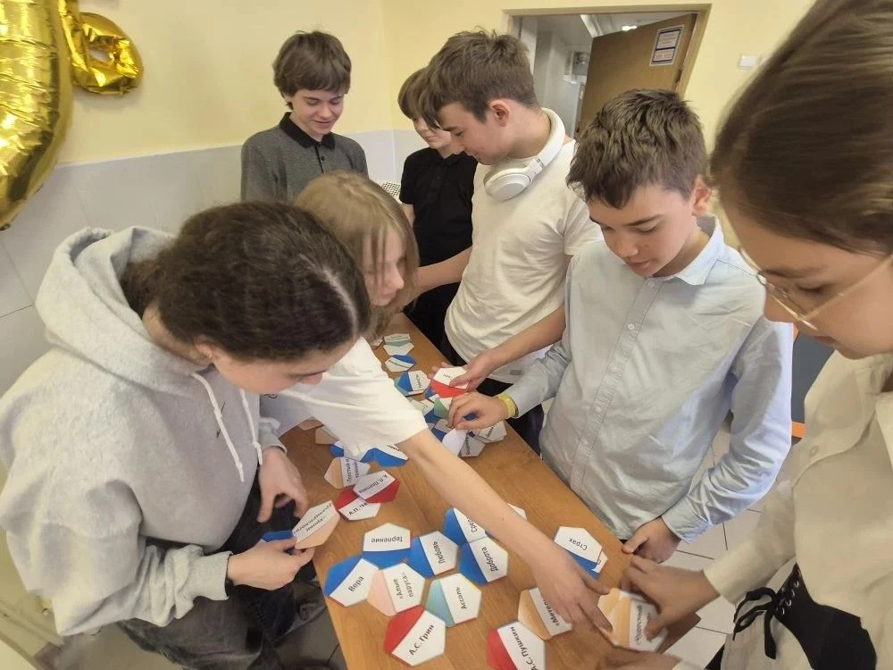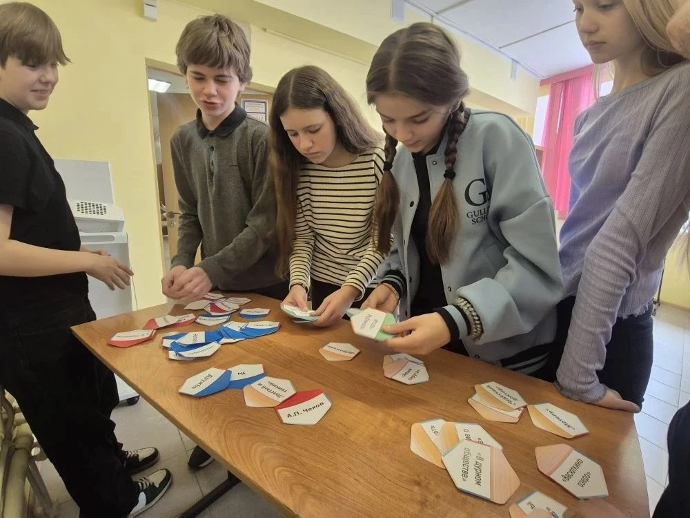 На переменах царила атмосфера азарта. Учащиеся 5–7 классов с удовольствием отгадывали ребусы, играли в «Литературные грани» (подбирая к шестиугольнику грани: автор, герой, характеристики) и готовились к МЦКО по русскому языку. Восторг у ребят 5–6 классов вызвала викторина «Угадай произведение по эмодзи», где они блеснули ассоциативным мышлением.
