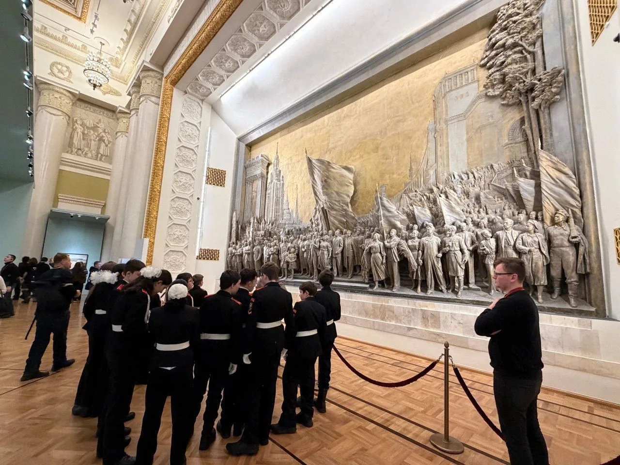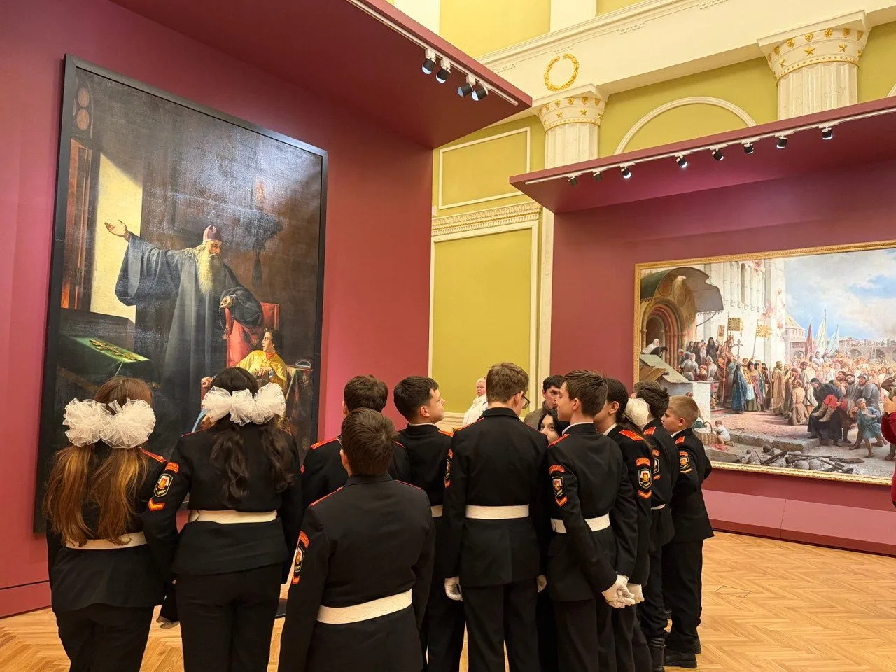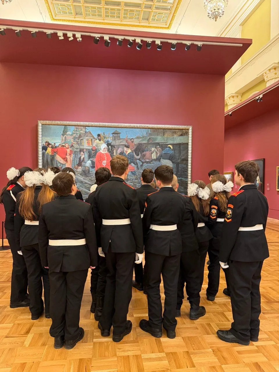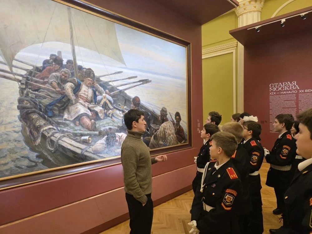 Кадеты познакомились с масштабной панорамой Москвы сквозь века, состоящей из 104 живописных полотен и 11 скульптур. Среди них — иконы Андрея Рублева, признанные шедевры русской живописи «Святая Русь» Михаила Нестерова, «Степан Разин» Василия Сурикова, «Торжественное заседание Государственного совета...» и «В осажденной Москве» Ильи Репина. Экспозиция Русского музея содержит четыре тематических раздела: «Старая Москва», «Москва-столица», «Новая Москва», «Москвичи».