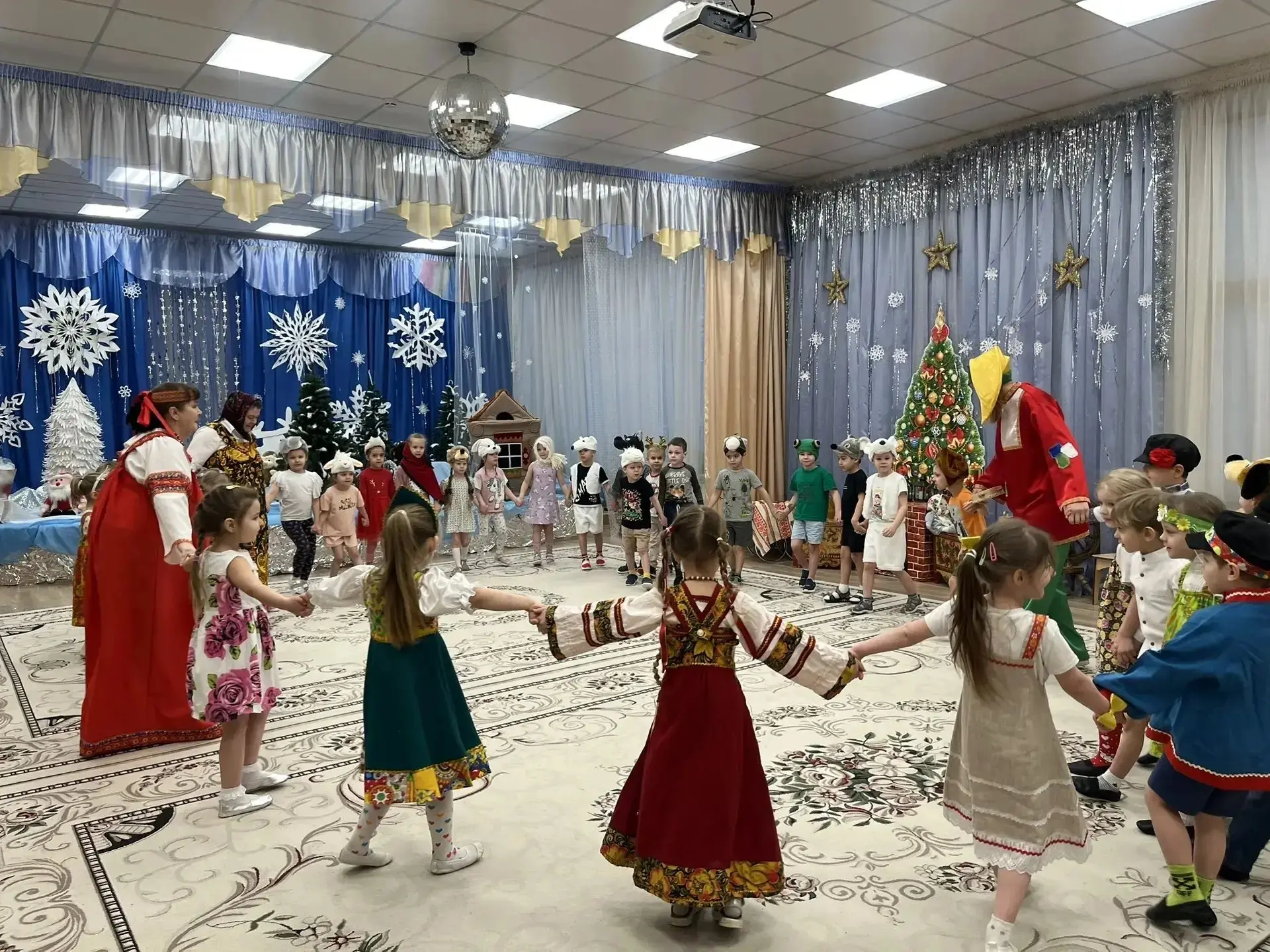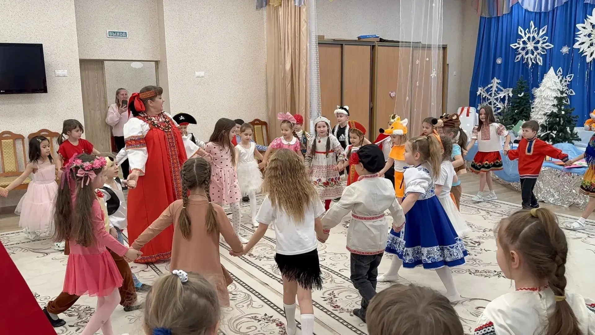 В ходе праздничного развлечения дети водили хороводы, устраивали веселые переплясы 🎉, играли в народные игры, участвовали в старинных гаданиях, исполняли традиционные колядки 🎵.