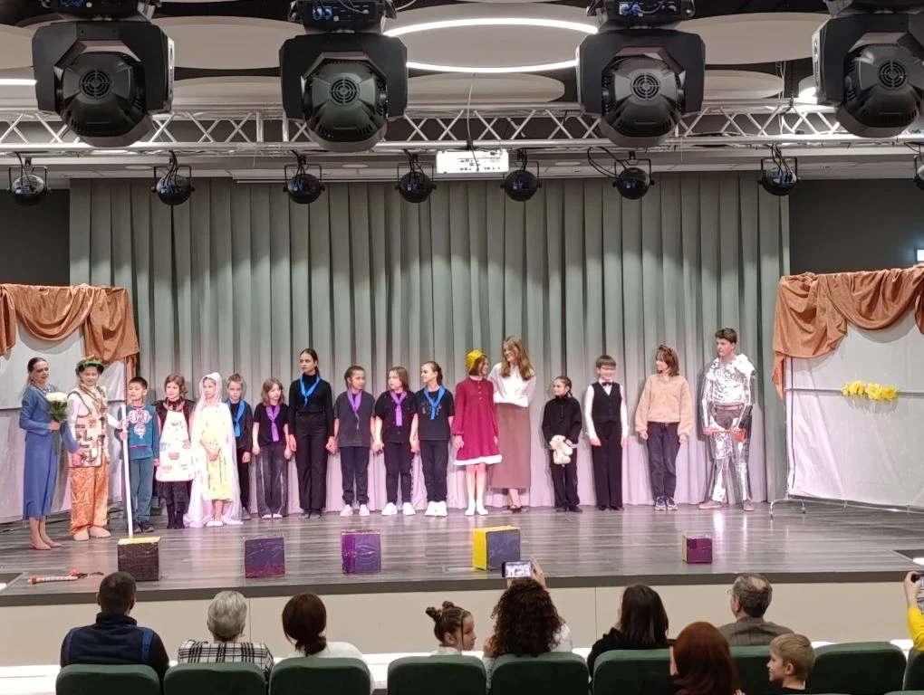 Потом школьная сцена превратилась в волшебную страну из сказки Волкова «Волшебник изумрудного города». Дети 2-8 классов очень эмоционально и ярко рассказали со сцены историю маленькой девочки с большим и добрым сердцем. Это история о настоящей дружбе, и о том, как важно верить в себя. Каждый юный артист продемонстрировал глубокое погружение в своего персонажа, и что немаловажно, ребята проявили себя, как настоящая команда, помогая друг другу за кулисами и на сцене).