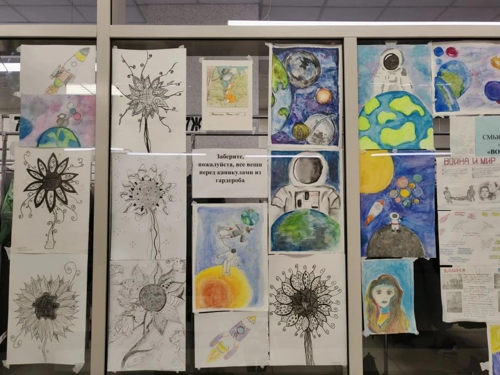 В холле первого этажа развернулись две замечательные выставки работ 10А: «Система образов в пьесе "Вишнёвый сад"» и «Смысл названия романа "Война и мир"». Кроме того, в рамках метапредметной недели в Гимназии проходит выставка рисунков, где каждый может увидеть яркие и оригинальные творческие работы учащихся.